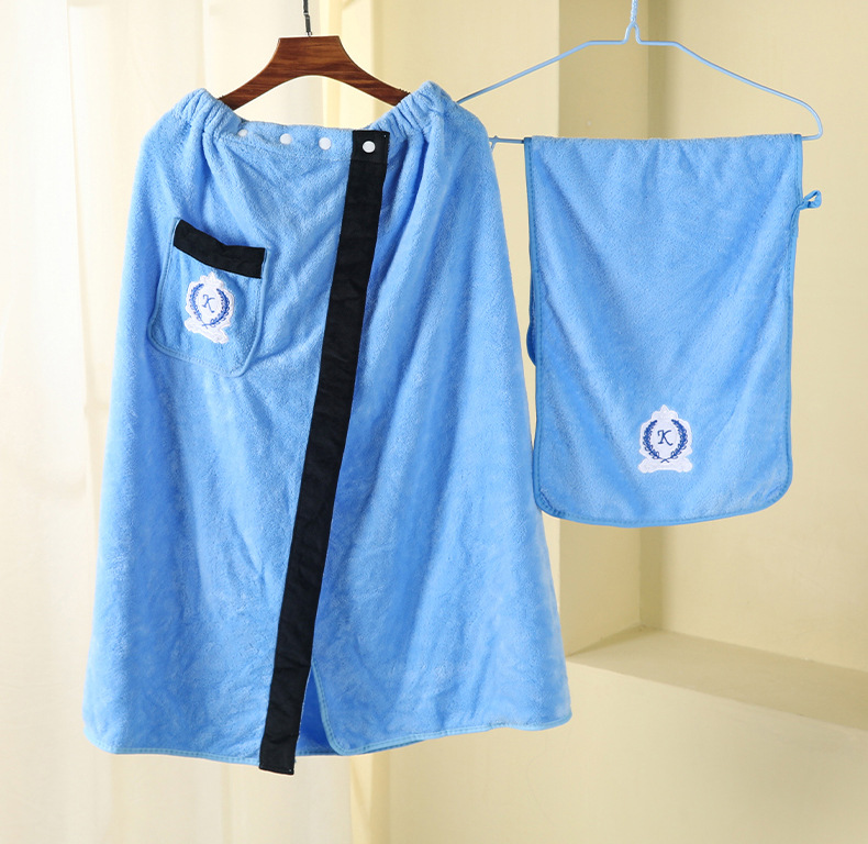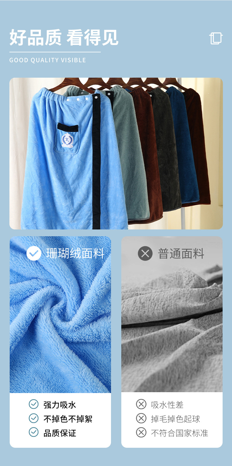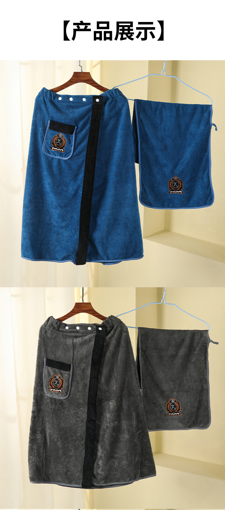 颜色 咖啡色套装(毛巾+浴裙),天蓝色套装(毛巾+浴裙),深蓝色男裙(无毛巾!!非套装)
