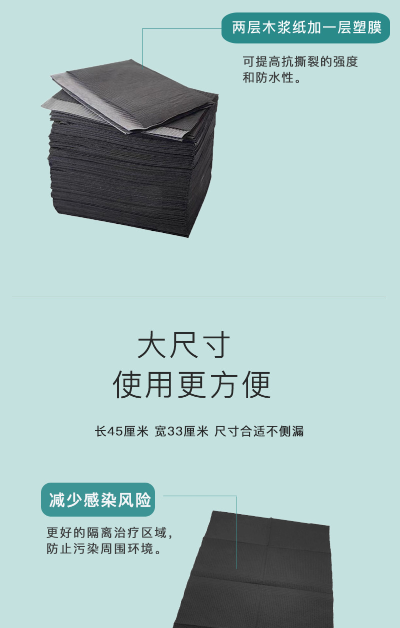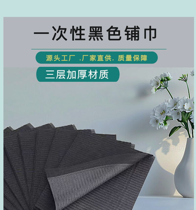 跨境一次性牙科黑色纸围巾 美甲铺巾纹身桌垫 牙科铺巾防水防污