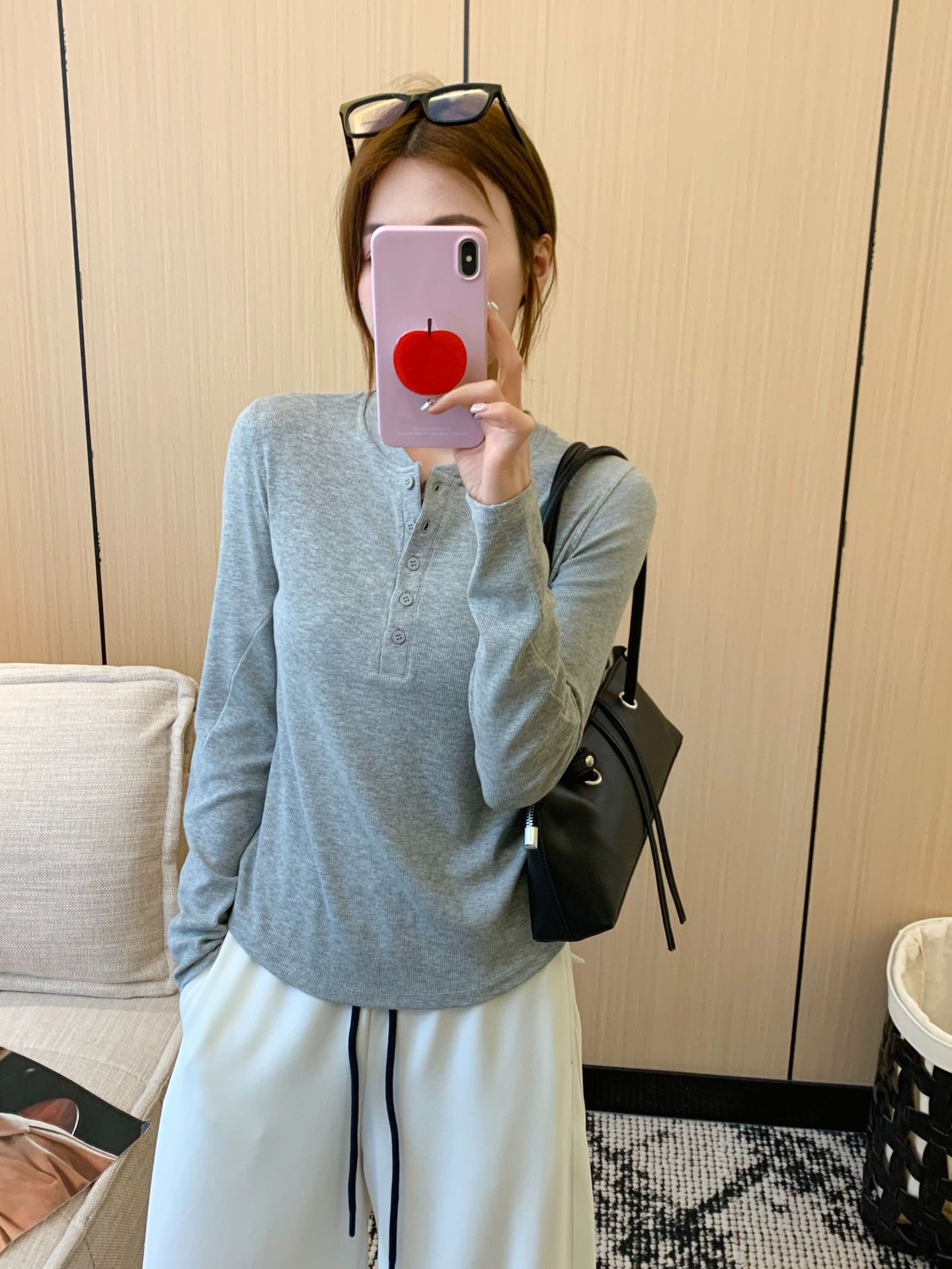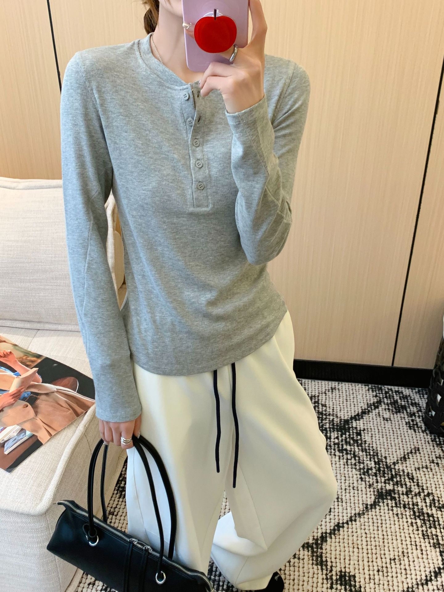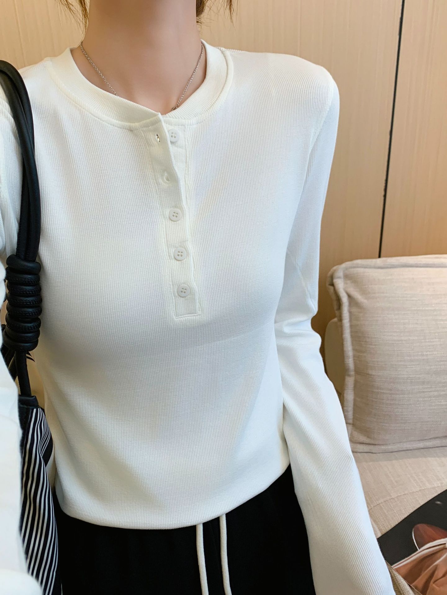 lulu同款圆领亨利衫上衣2025秋季新款修身纯色美式正肩长袖t恤女