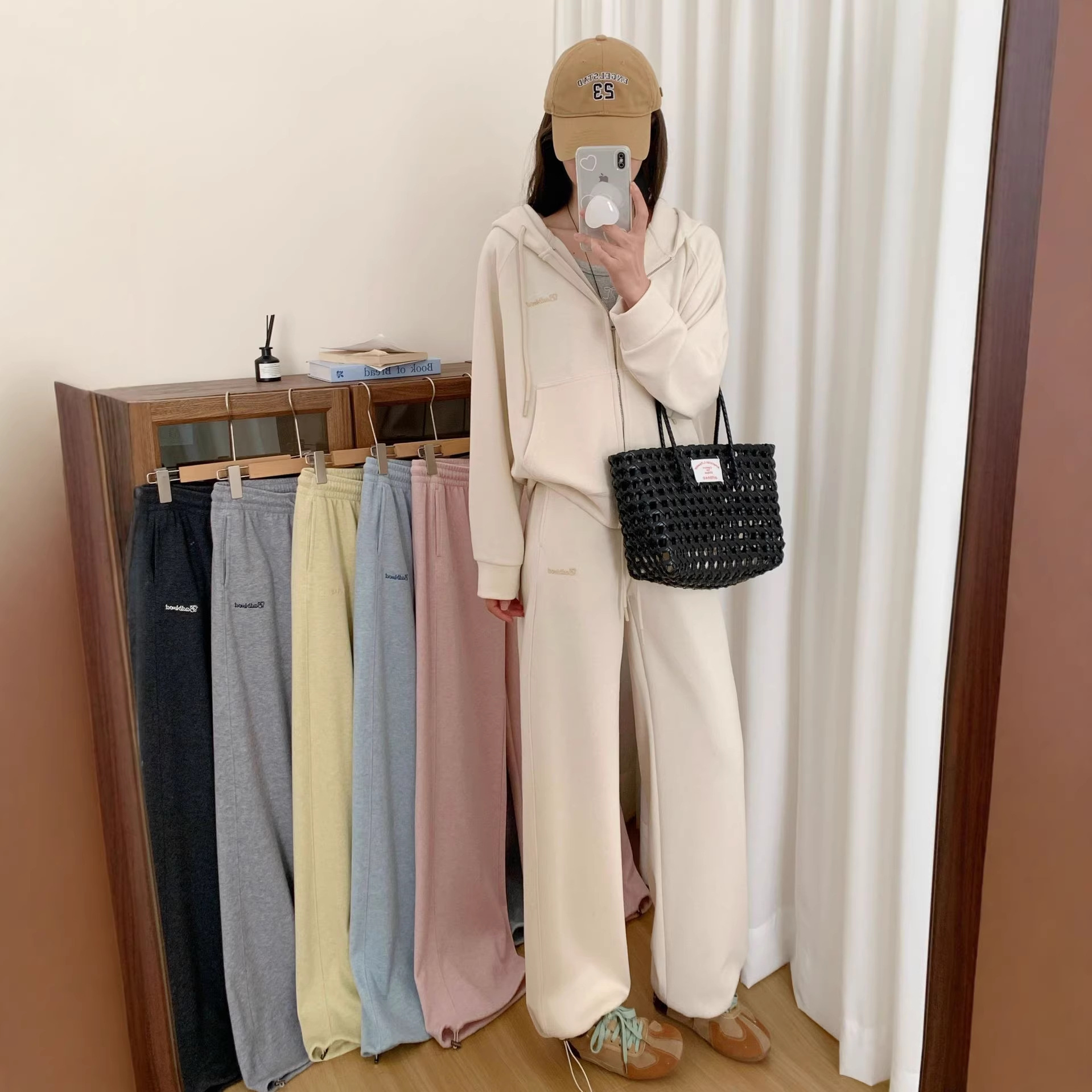春秋季运动长裤女显瘦遮肉长款高腰直筒裤小众潮牌ins小熊阔腿裤