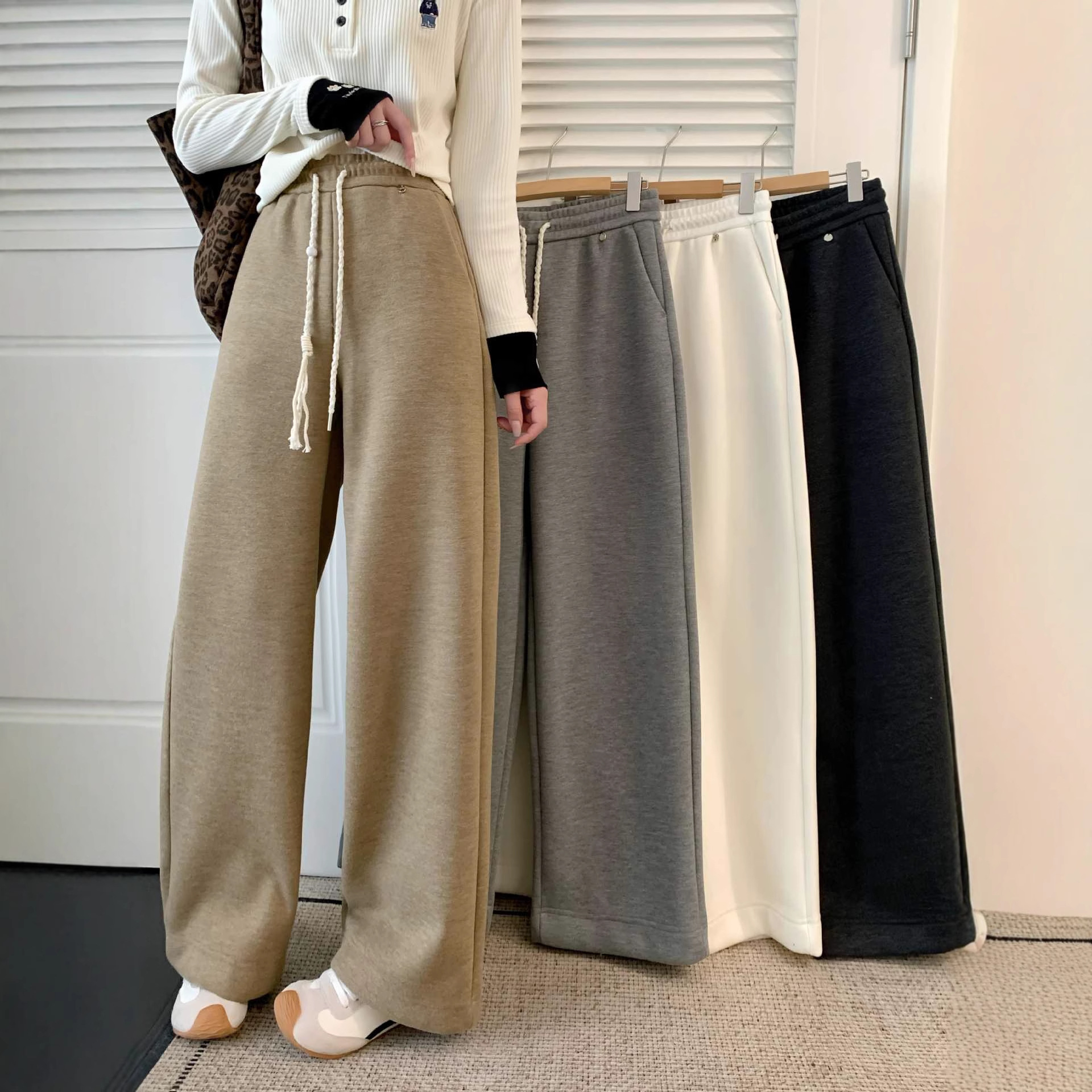 加绒裤子女冬高腰拖地显瘦女裤冬高级感加厚窄版百搭羊毛休闲裤