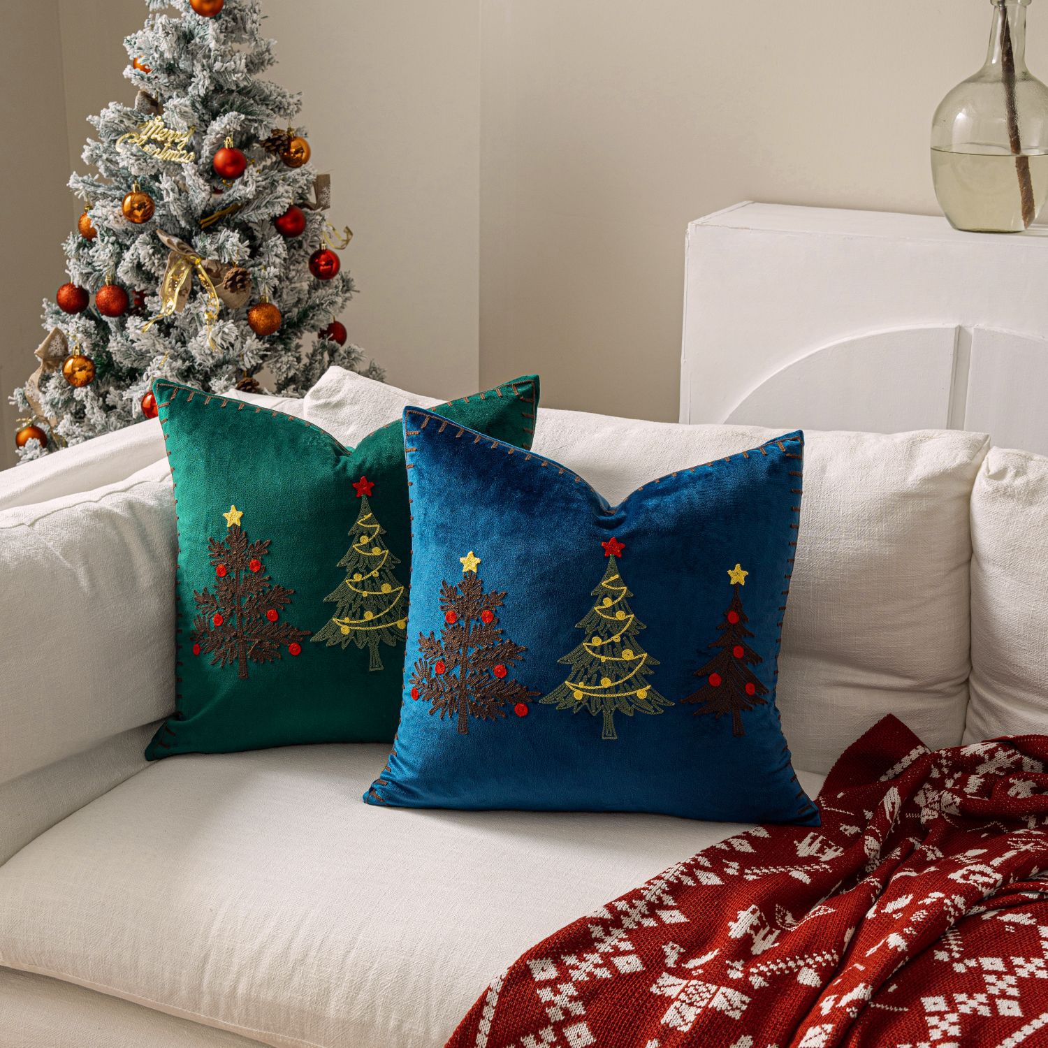 temu跨境热销圣诞树抱枕套,圣诞节客厅装饰刺绣靠垫套45*45cm