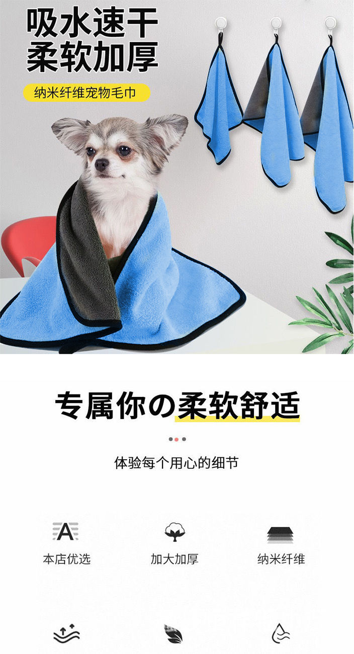 ペット吸水タオル厚手速乾無粘毛用品犬猫専用入浴タオルペット専用用品