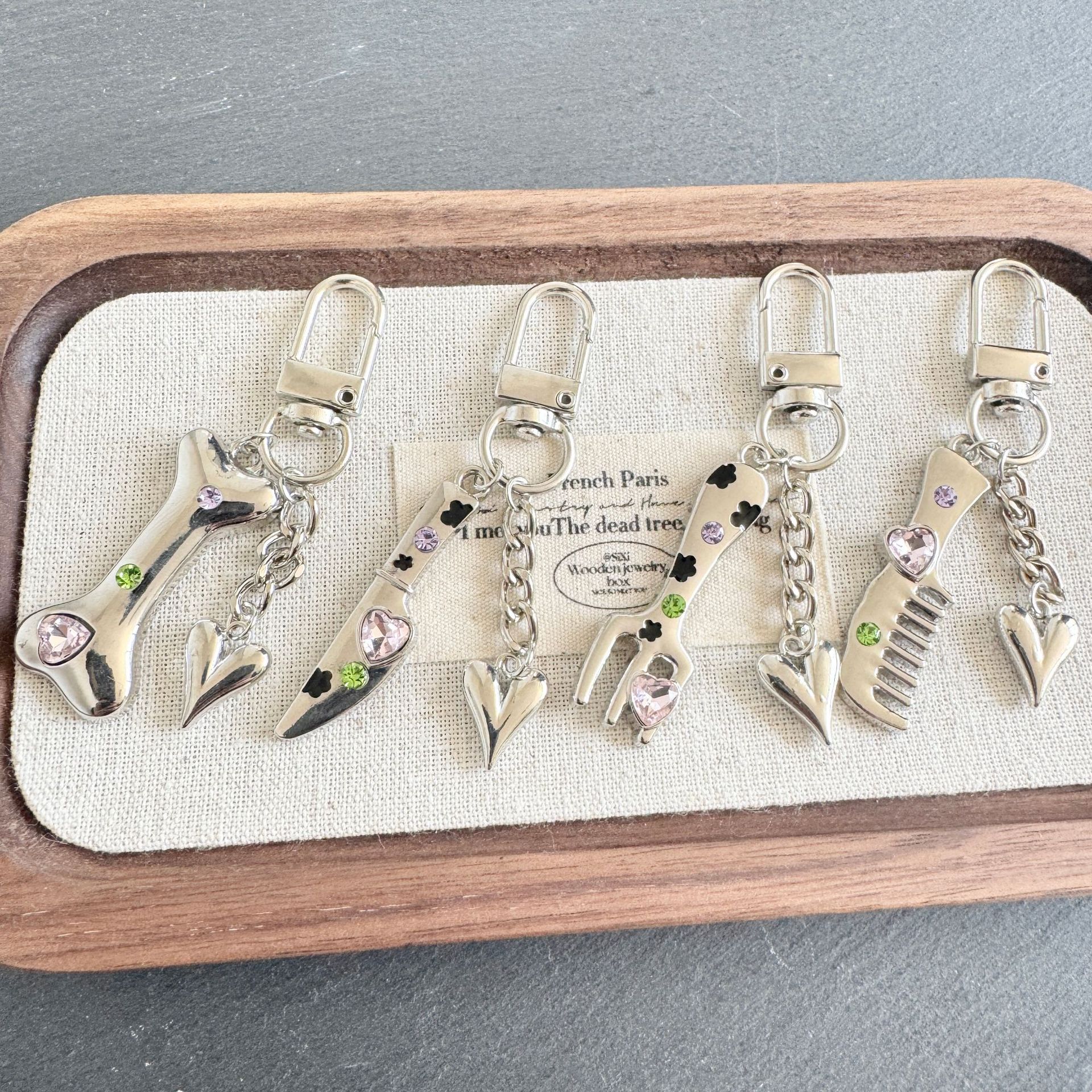 シンプルでファッショナブルなボーンコームナイフとフォークラブキーホルダーカップルキーホルダーmiuバッグペンダントペンダント