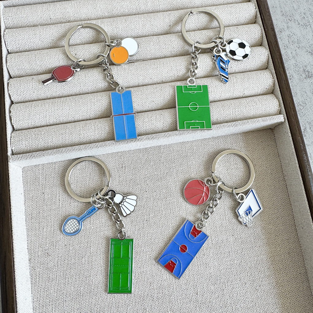 运动系列钥匙扣乒乓球足球羽毛球篮球场景挂件创意金属钥匙圈批发