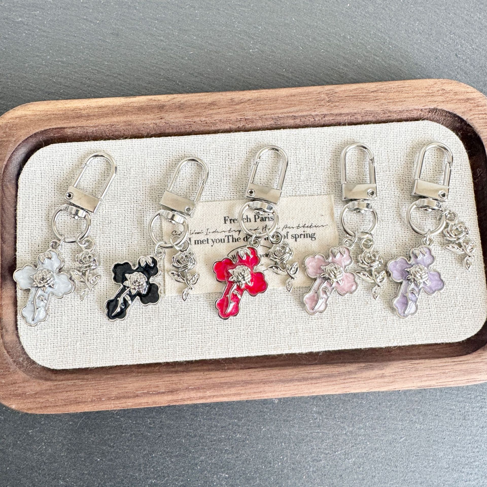 新品insカラークロス花キーホルダーペンダントクリエイティブ合金小花イヤホン掛け飾りバッグアクセサリー