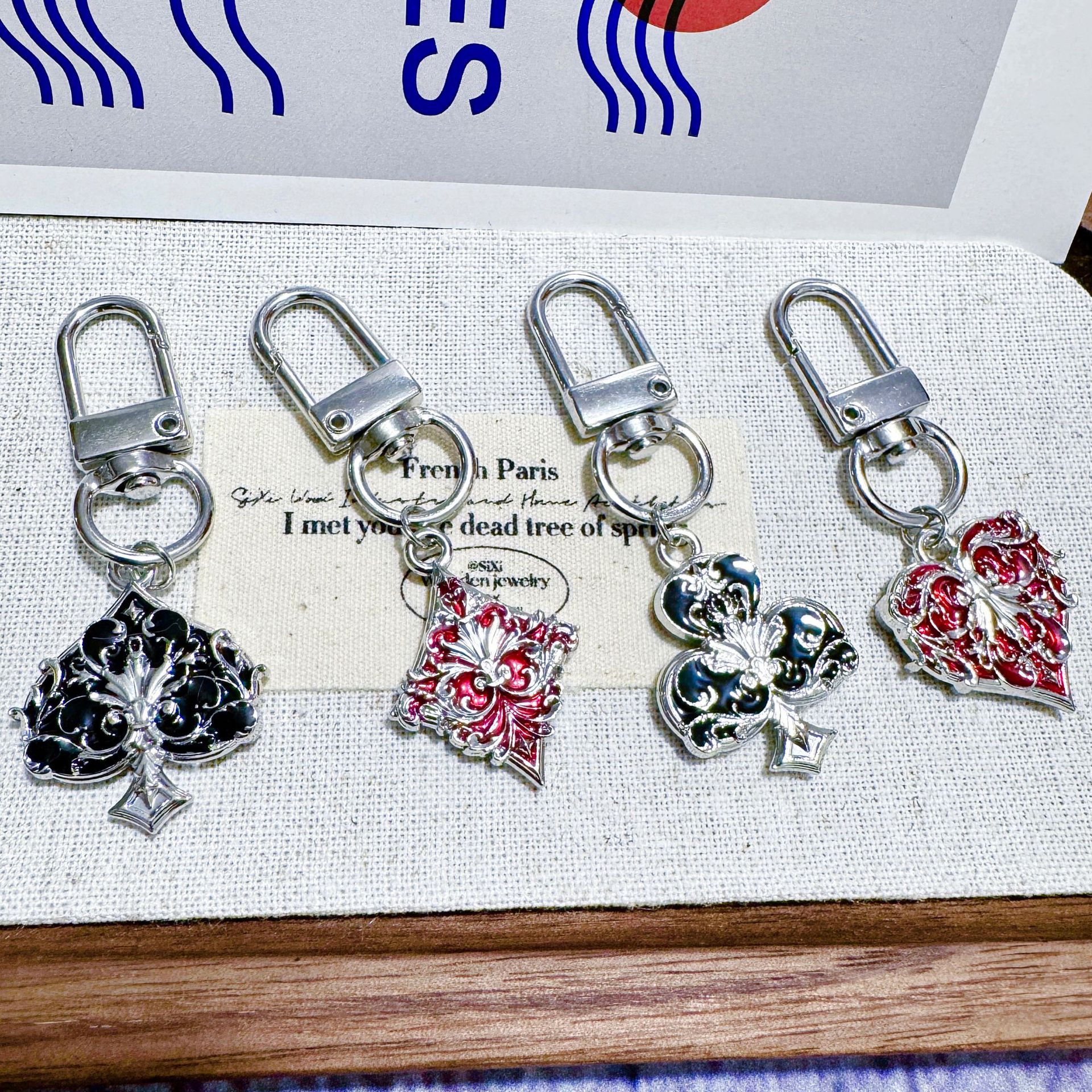 ゴシック風合金トランプのキーホルダーは黒紅梅方の経典の花柄のファッションの潮人が必ず個性を飾る必要があります。