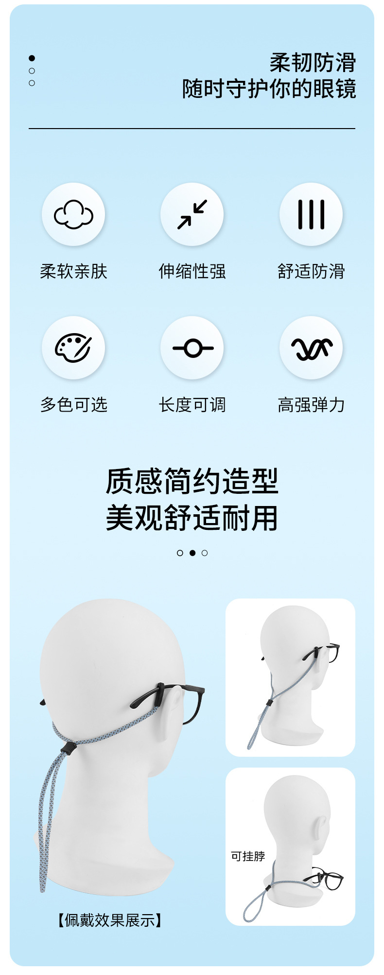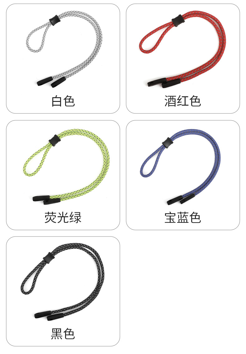眼镜反光绳可调节防滑掉运动涤纶带彩色挂绳批发固定太阳镜眼镜绳