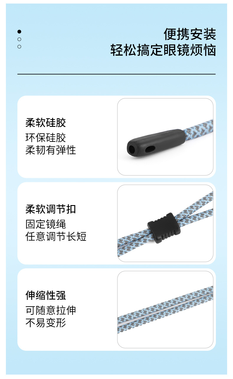 新款彩色镜绳眼镜可调节防滑蜡绳JS053镜框防掉落配件批发眼镜绳