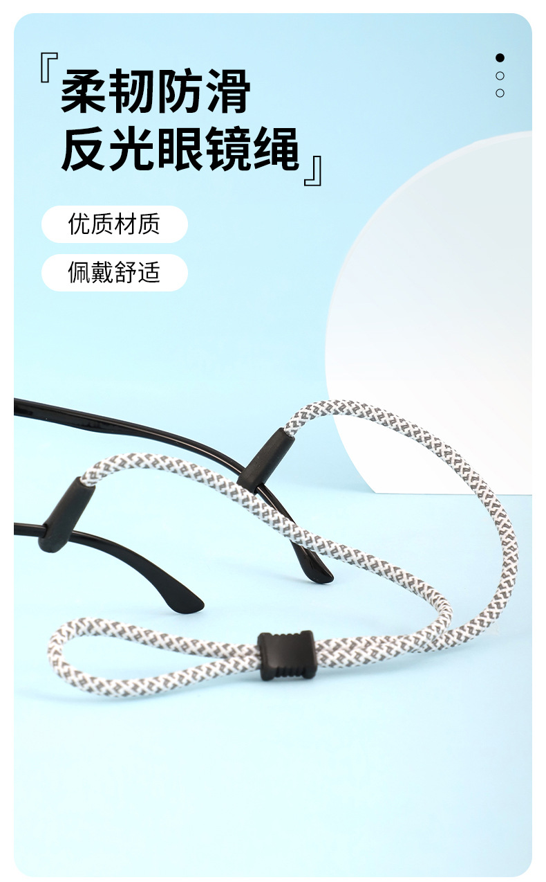 反光眼镜绳可调节运动防滑防掉彩色涤纶墨镜太阳镜固定挂链绳批发