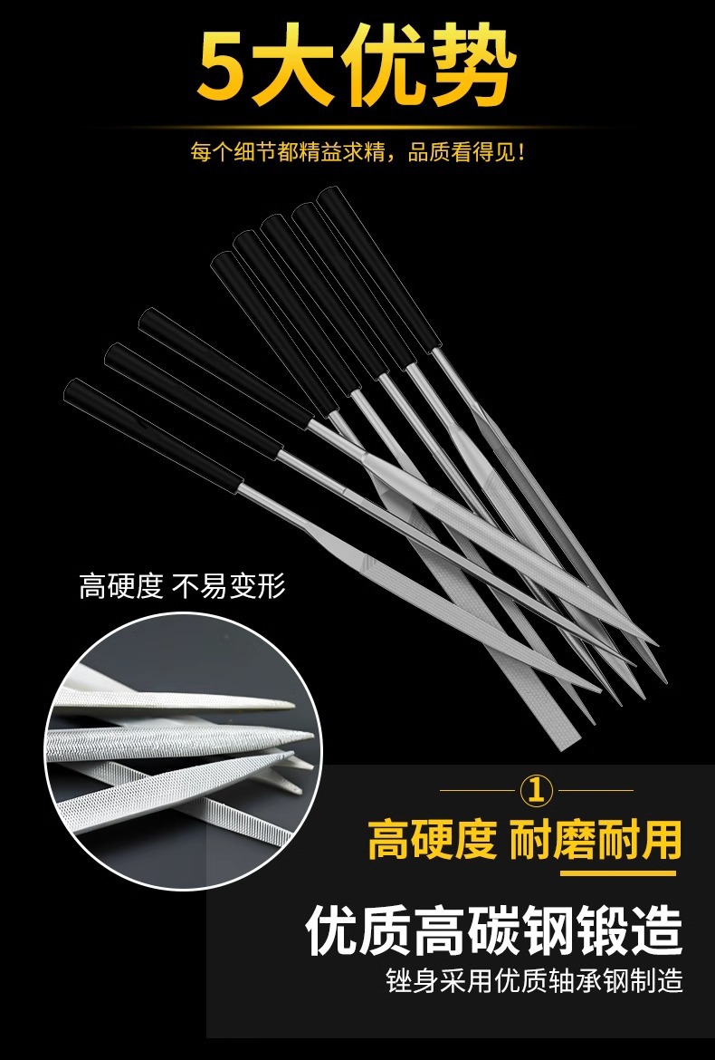 新款什锦锉刀小型套装钢锉金属打磨小挫刀三角半圆扁平锉优质木工