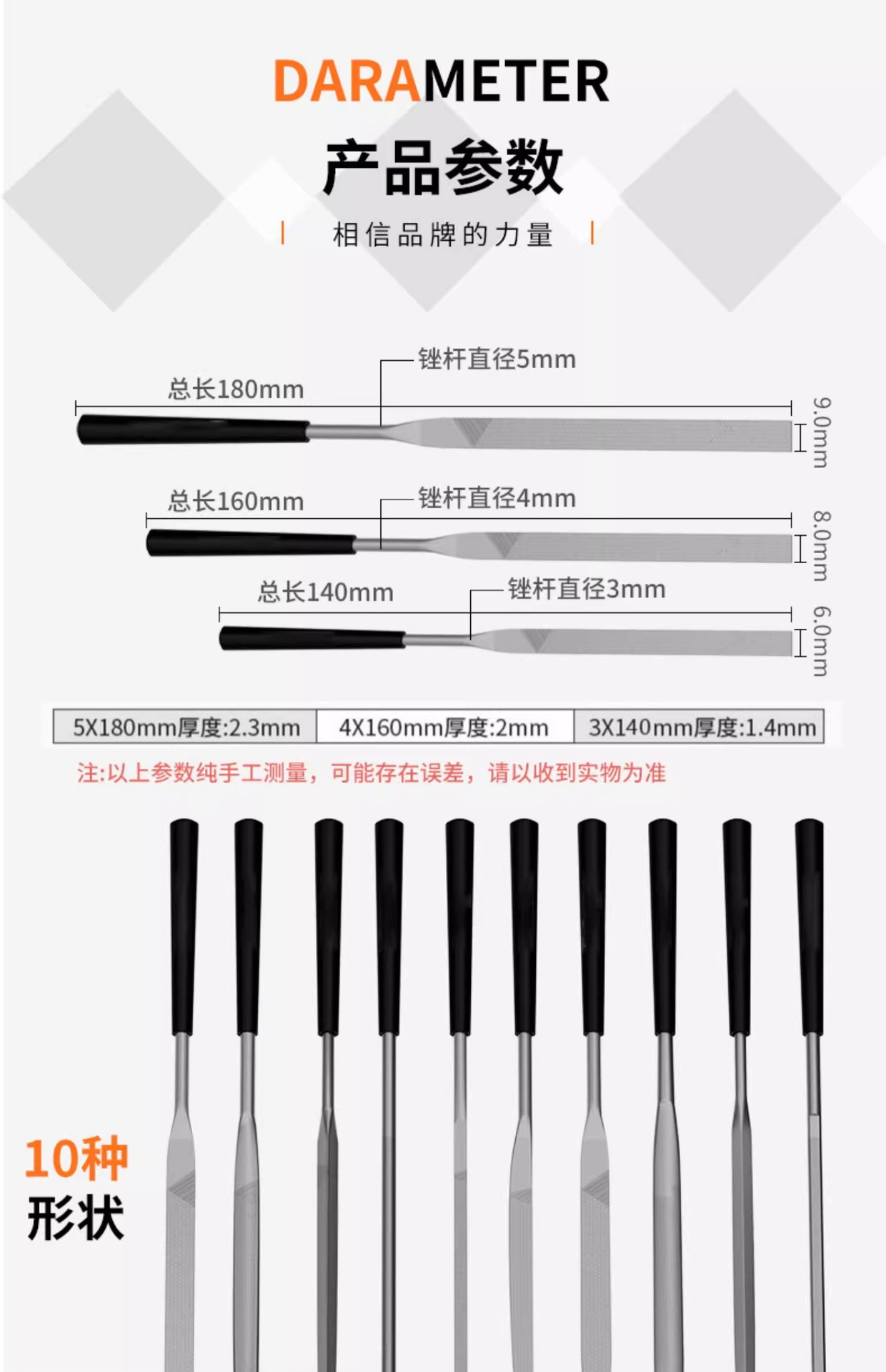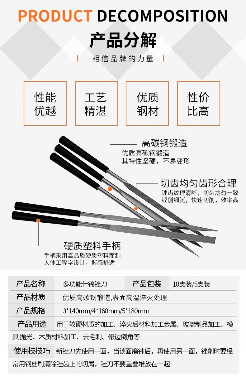 型号 3X140X5套装【5支组合装】,3X140X10套装【10支组合装】,4X160X5套装【5支组合装】,5X180X5套装【5支组合装】,3*140*10扁锉【10支装】,4*160*10扁锉【10支装】,5*180*10扁锉【10支装】