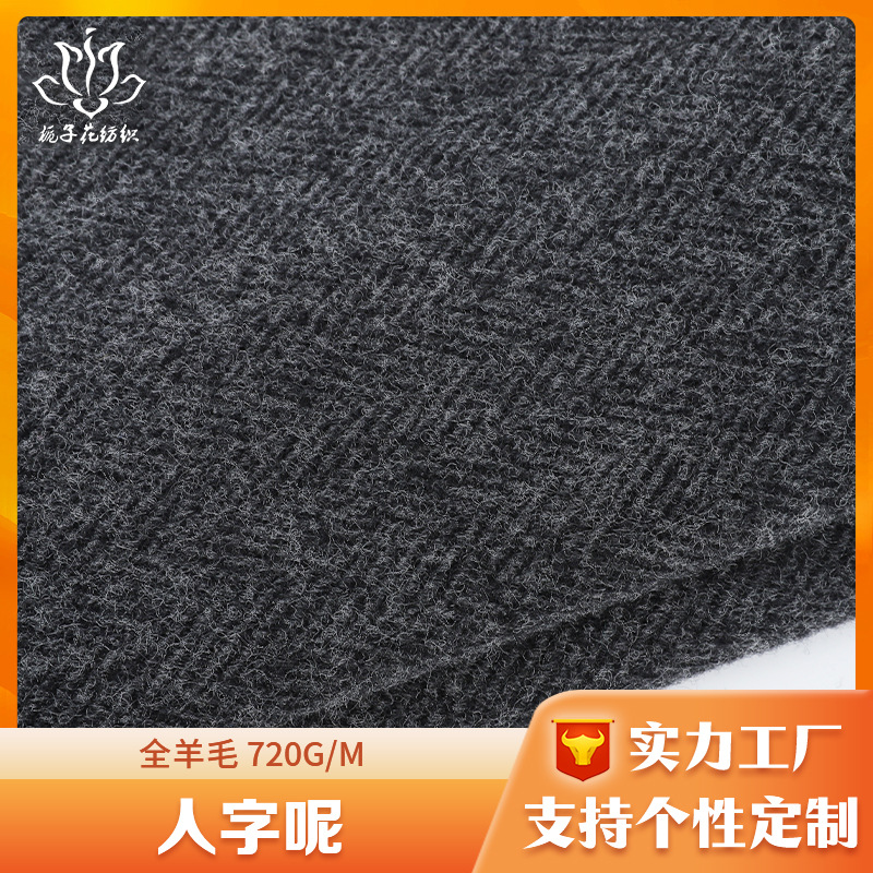 全羊毛深灰人字呢面料 秋冬做大衣的面料厂家直供人字纹毛呢面料