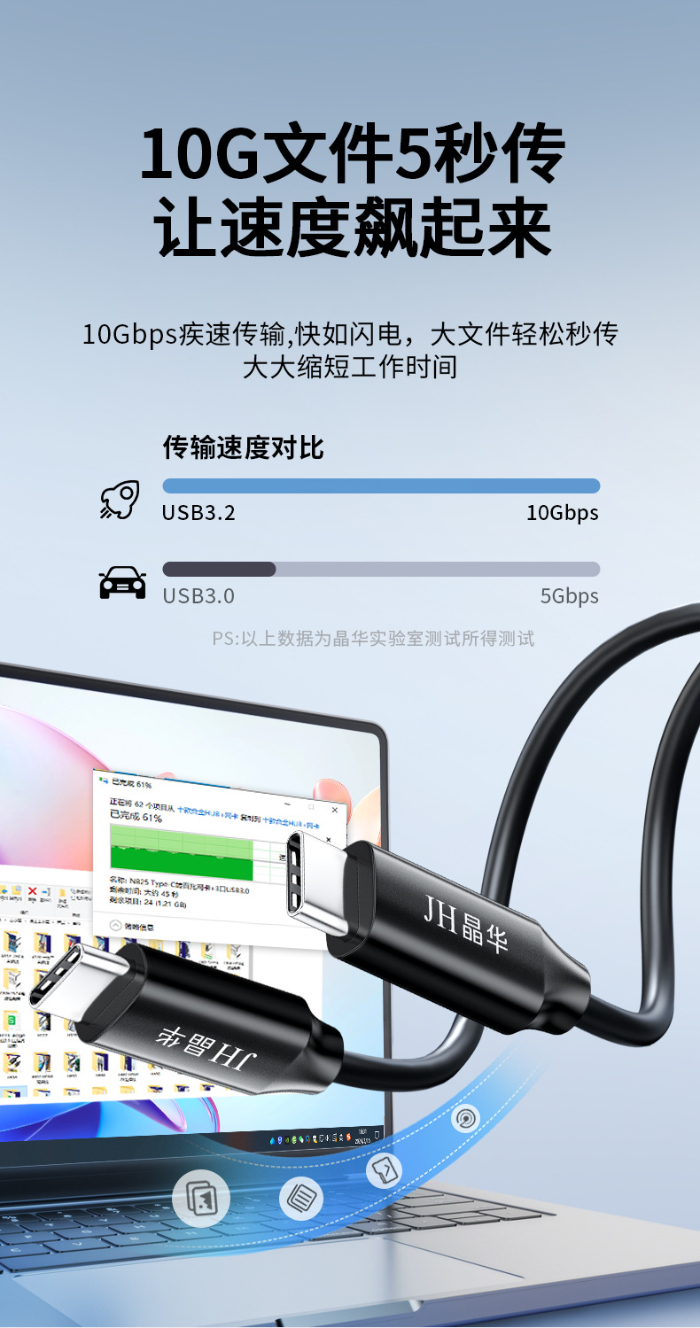 Jinghua 3.0 USB延長ケーブル オス-メス データケーブル 延長コード フルカバー 高速延長 5Gbps USB