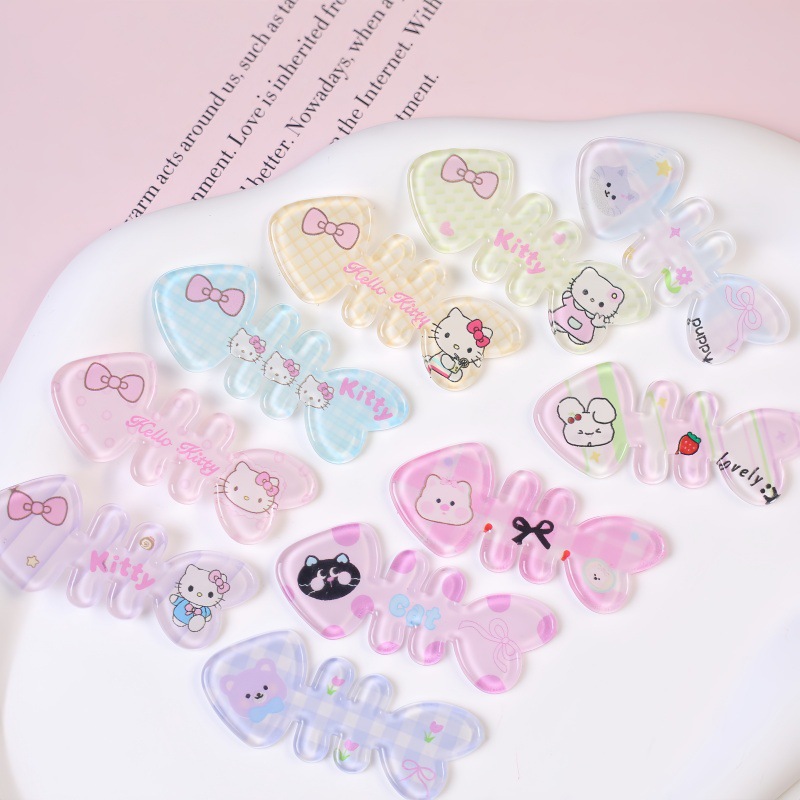 新款卡通透色猫咪鱼骨配件手工 DIY发夹包包奶油胶手机壳装饰批发