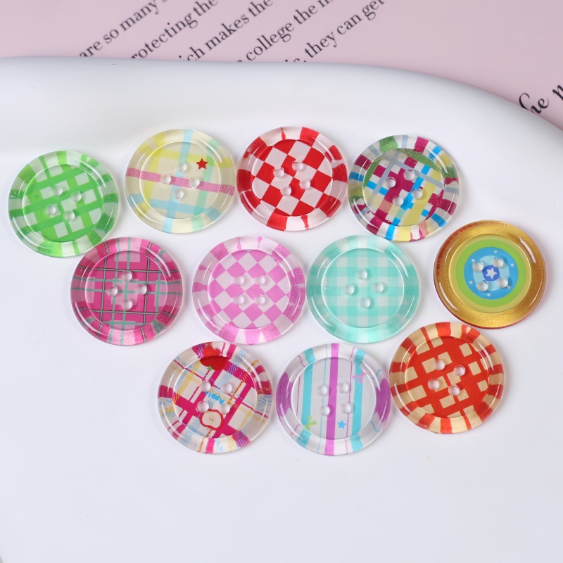 新款透色纽扣格纹配件洞洞鞋材料 diy奶油胶手机壳贴片发饰装饰品