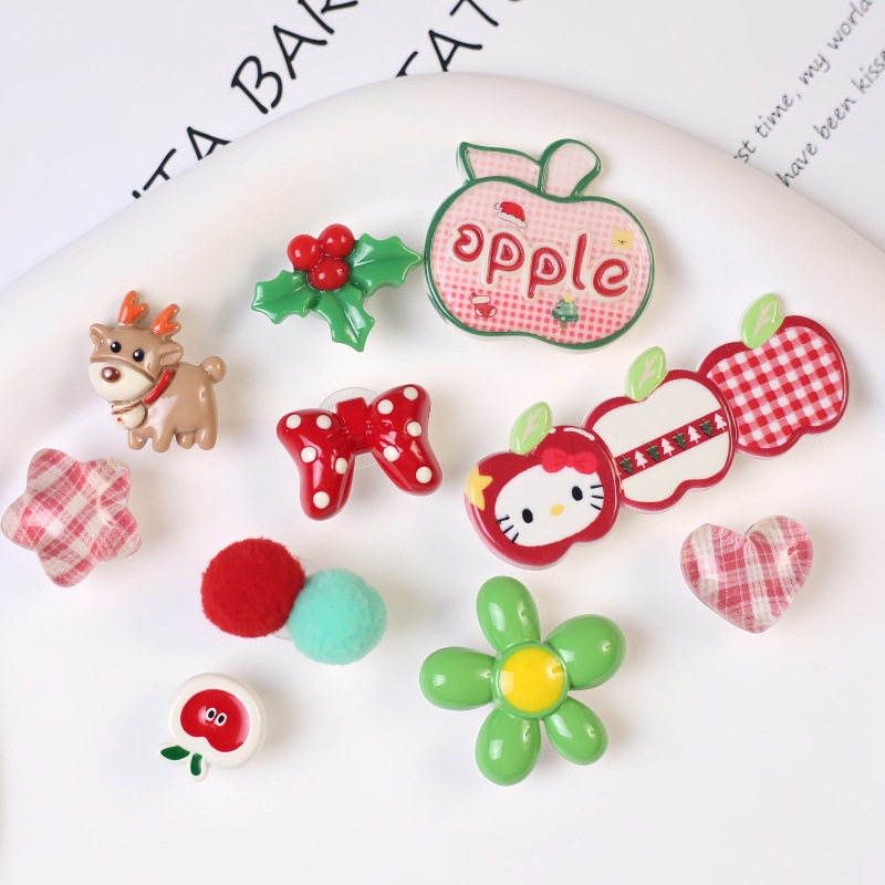 亮面卡通麋鹿苹果 DIY手工发夹发饰水杯胸针手机壳材料树脂配件批