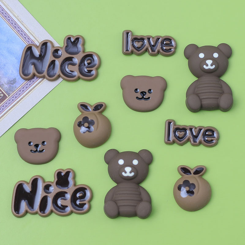 カレー色熊loveアクリルdiyアクセサリー携帯電話ケース靴ボタン靴花パッチヘアクリップ髪飾り材料