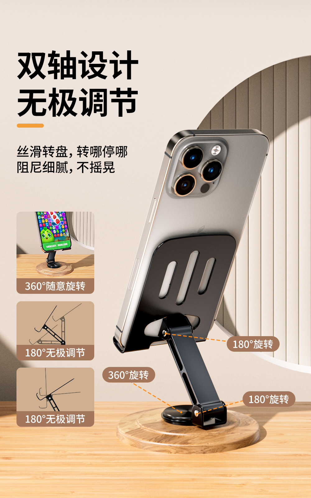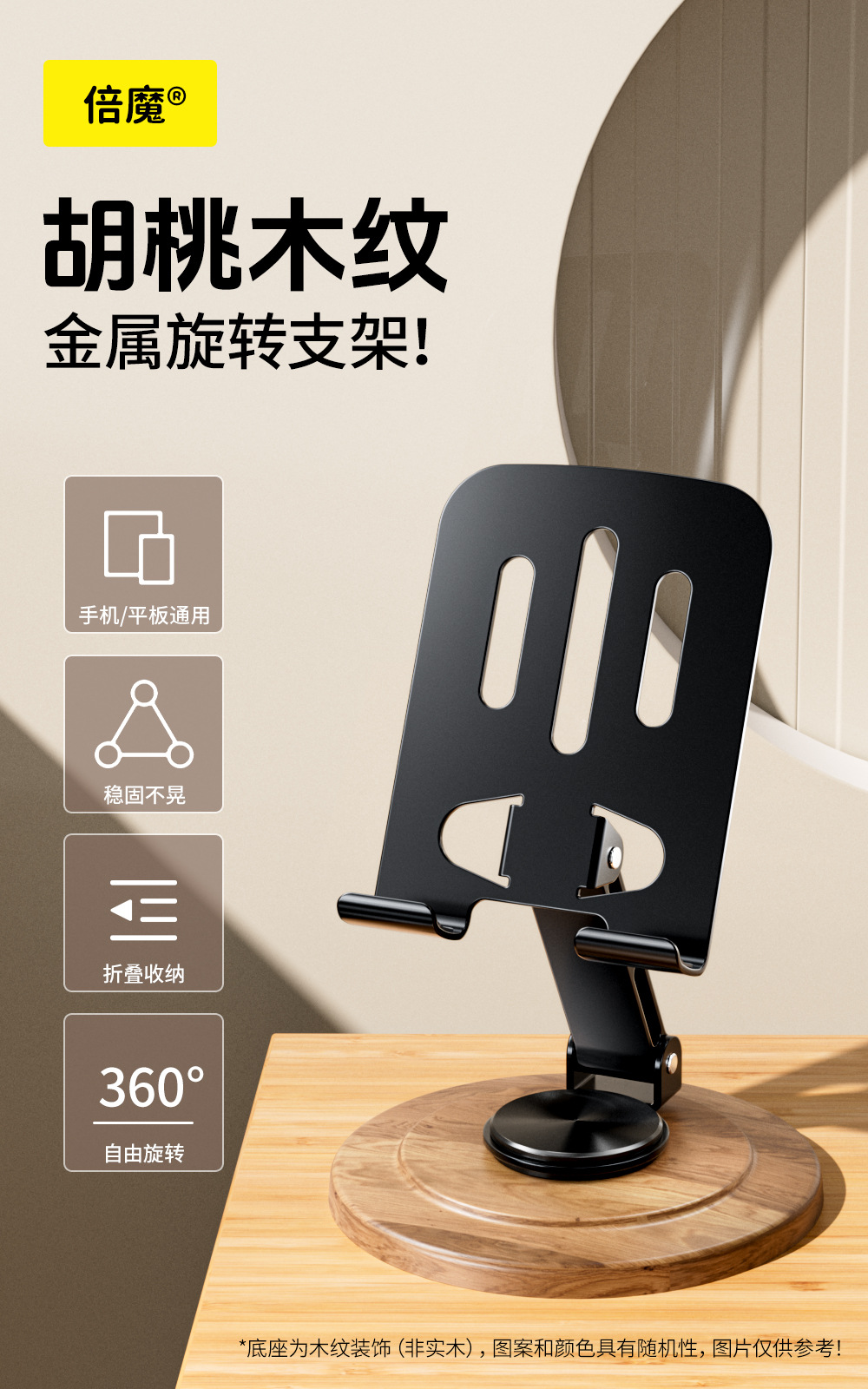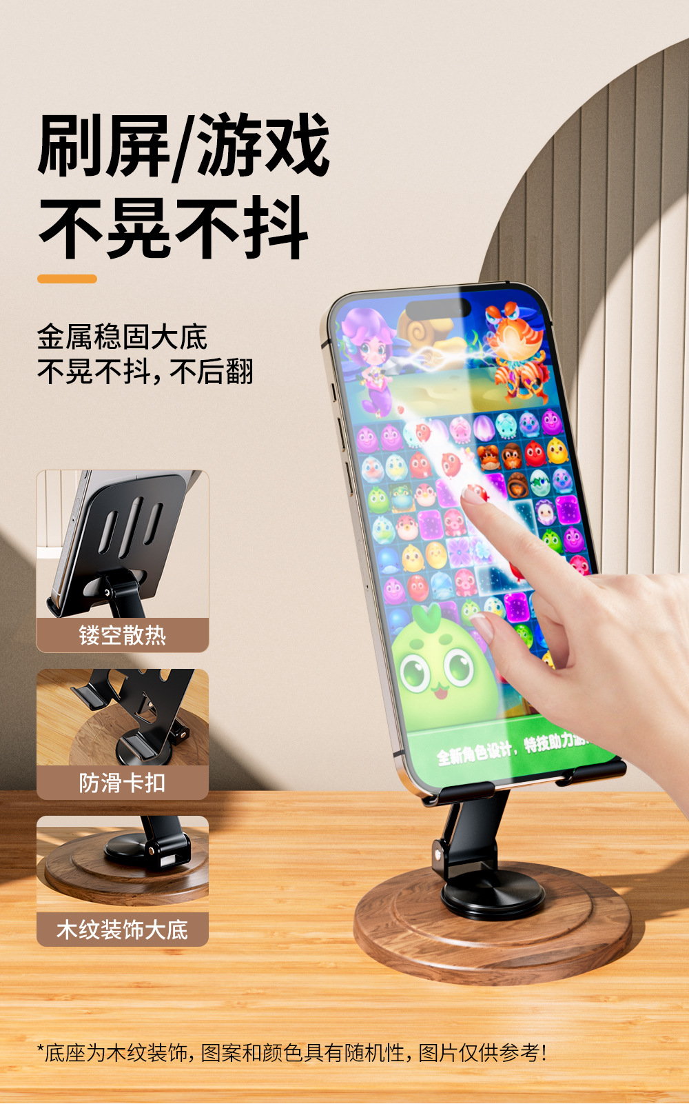 【工厂批发】金属旋转胡桃木底座手机支架懒人解压金属支架平板折