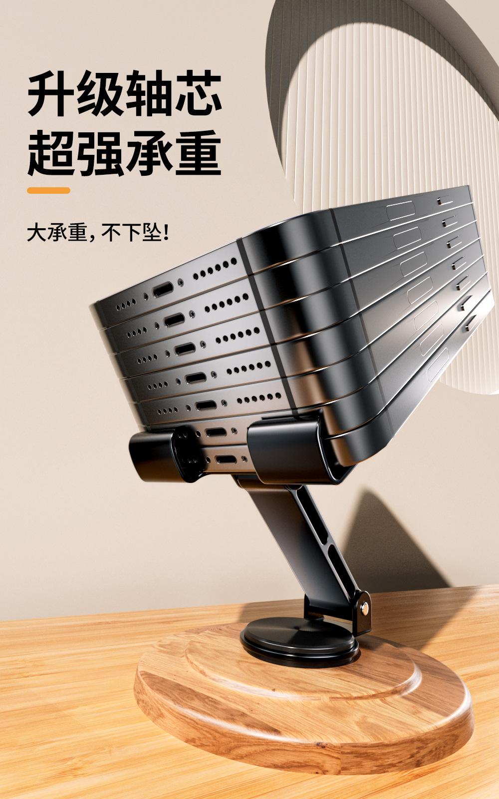 跨境木纹金属旋转折叠桌面手机支架懒人直播平板可升降调节便携款