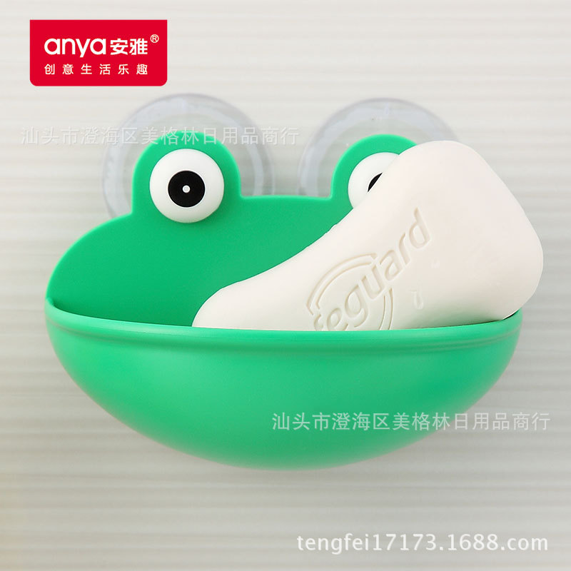 クリエイティブファッションプラスチック浴室水切り石鹸ボックスカエル石鹸ホルダー強力吸盤かわいい漫画石鹸ボックス