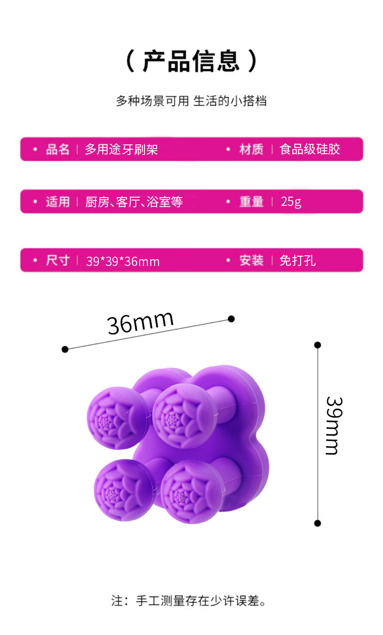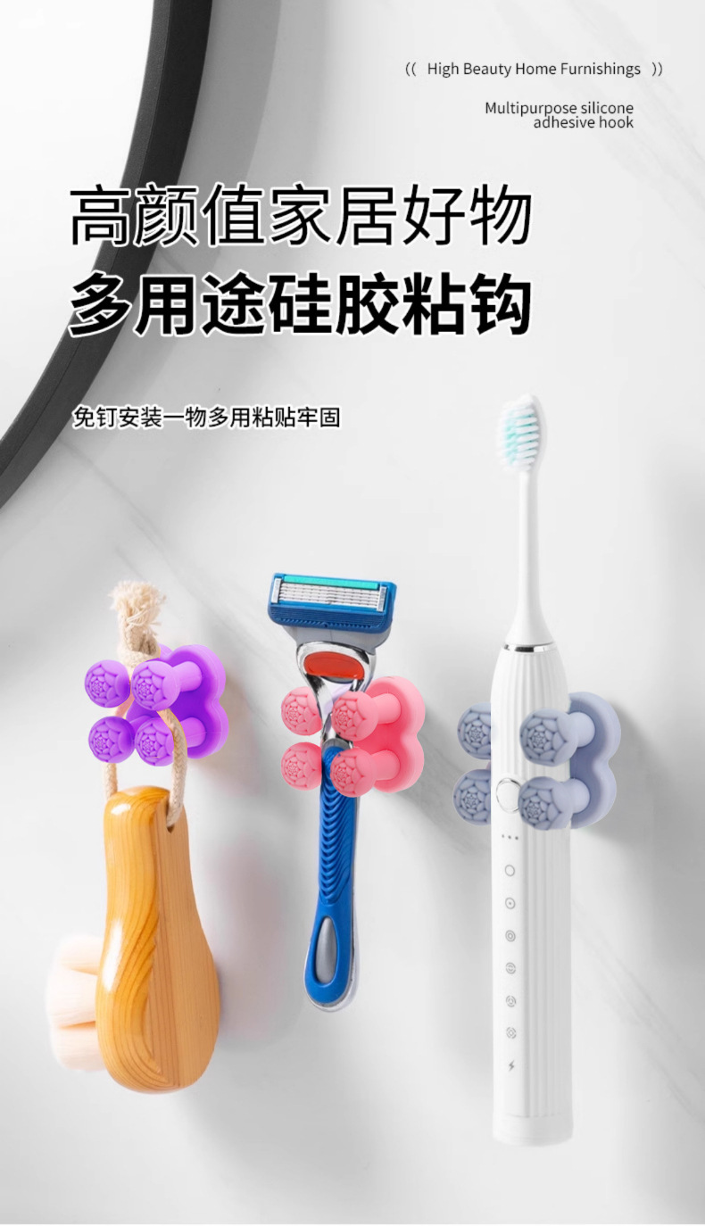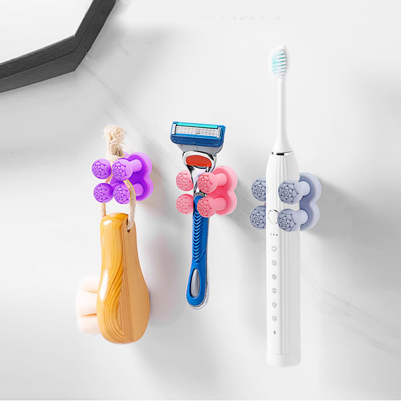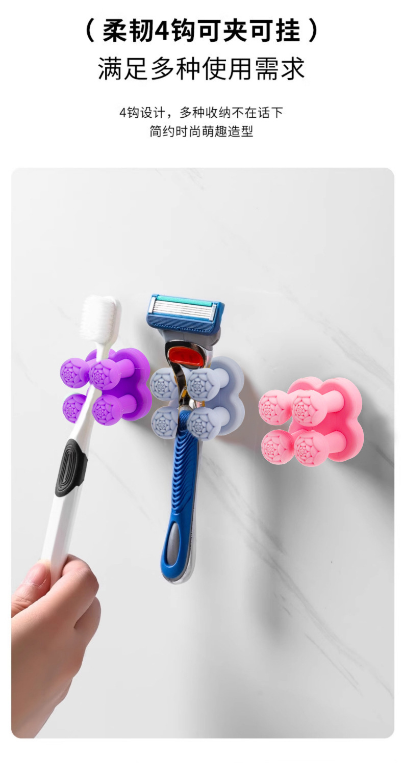 厂家批发硅胶花朵牙刷架 多功能置物挂钩防潮易干硅胶牙刷置物架