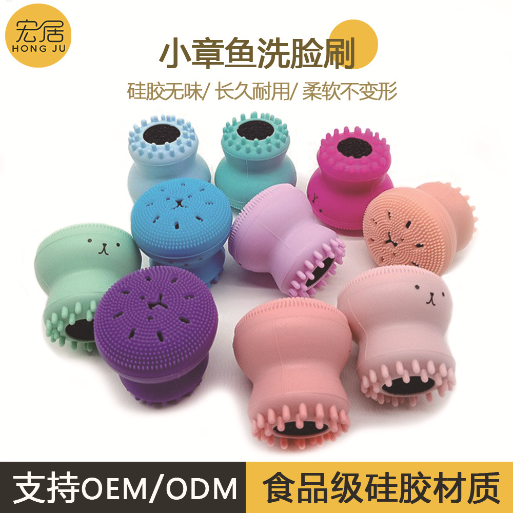 シリカゲルのタコの洗顔ブラシのクラゲのダブルヘッドの洗顔ブラシは黒髪の顔の清潔ブラシのシリカゲルの洗顔器の洗顔ブラシに行きます。