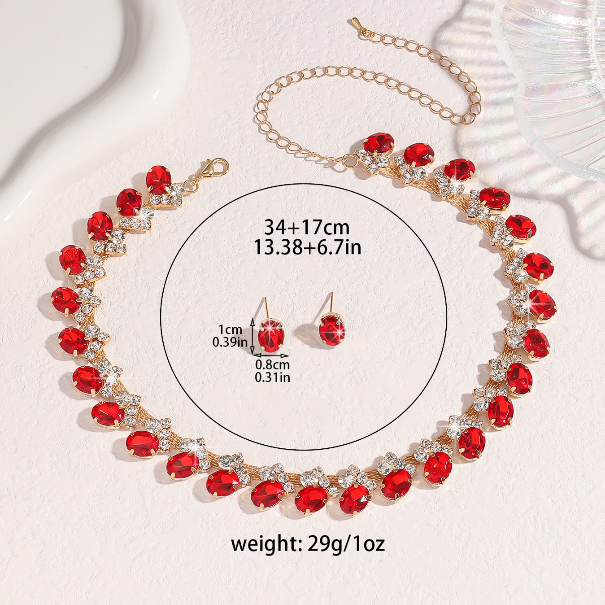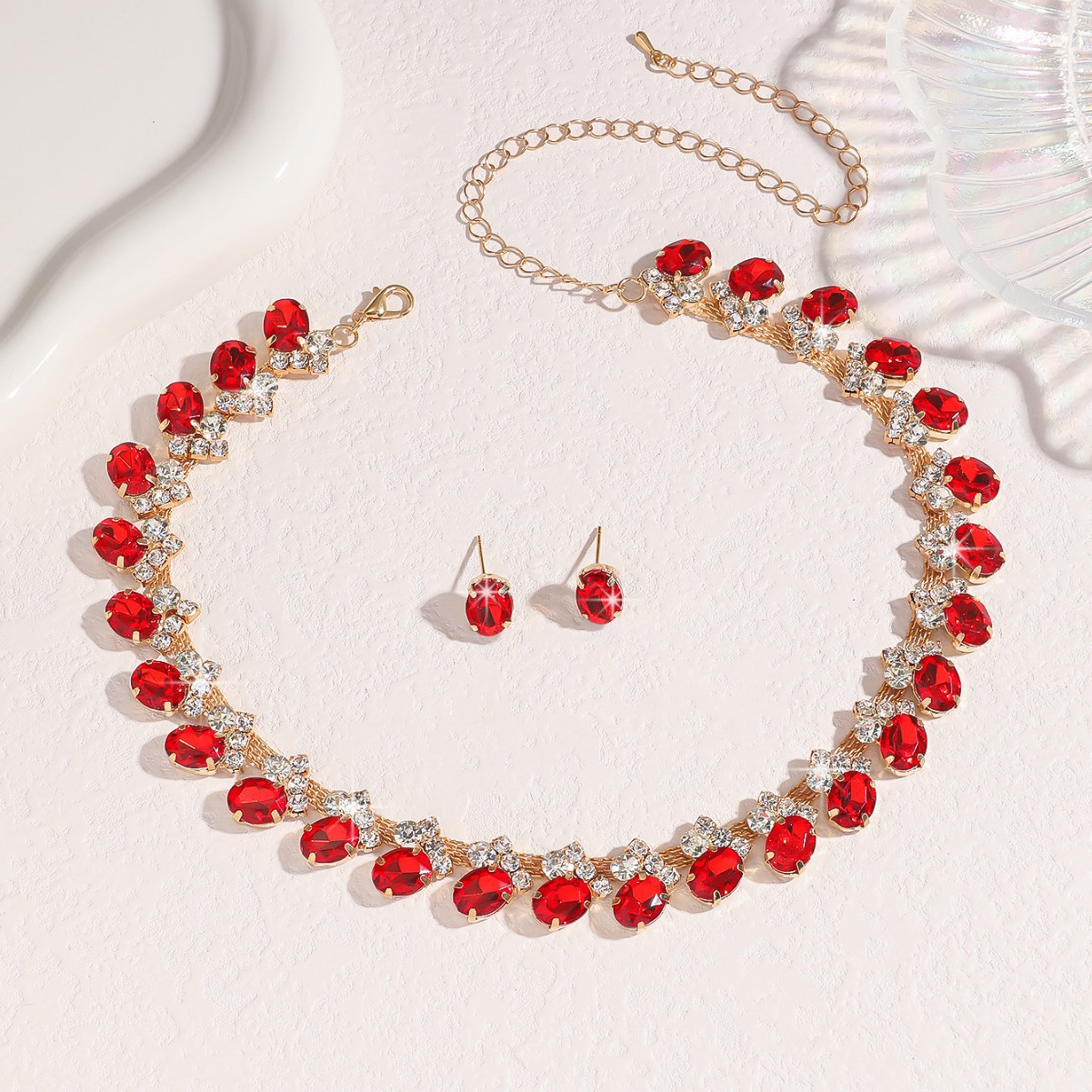 国境を越えたソース欧米の人気白カラー青緑赤水滴水晶ネックレスイヤリングセットジュエリー4点セット