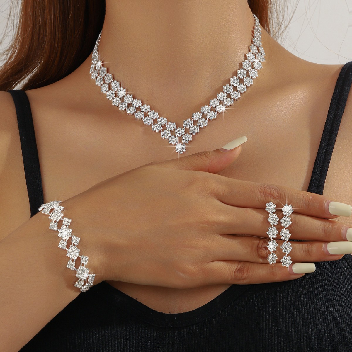 欧美跨境 新娘首饰套装多款可选 闪钻项链耳环两件套时尚婚纱饰品