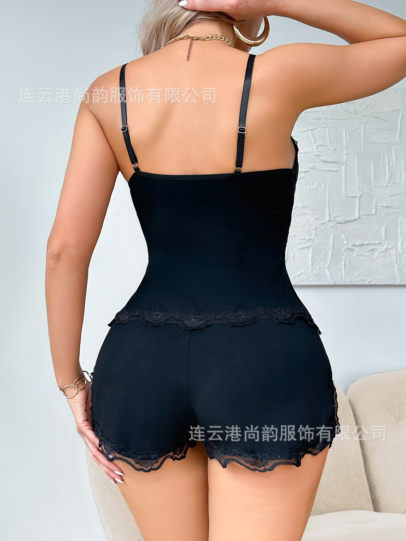 跨境新品女士舒适蕾丝花边吊带家居服套装休闲吊带上衣短裤两件套
