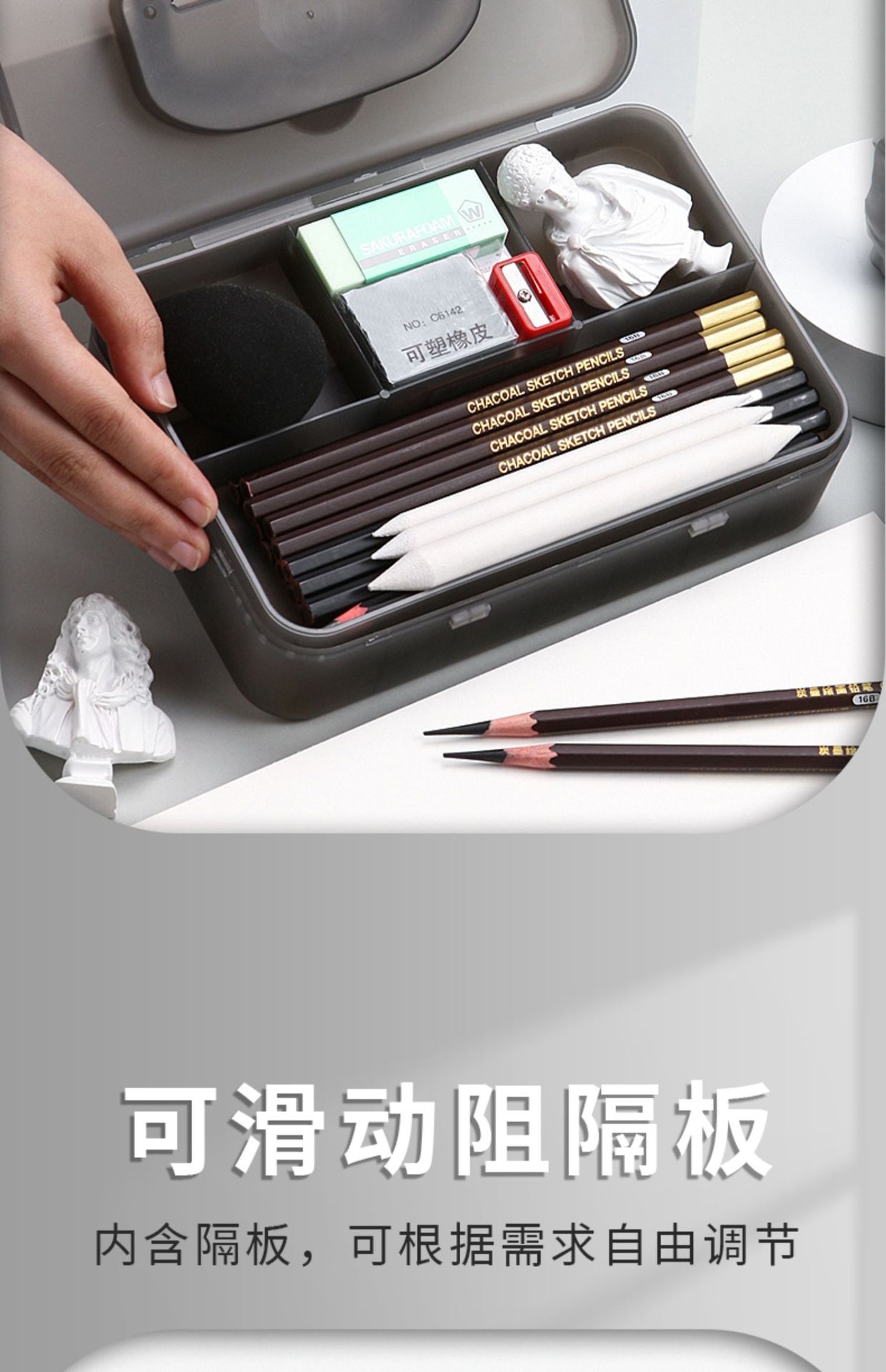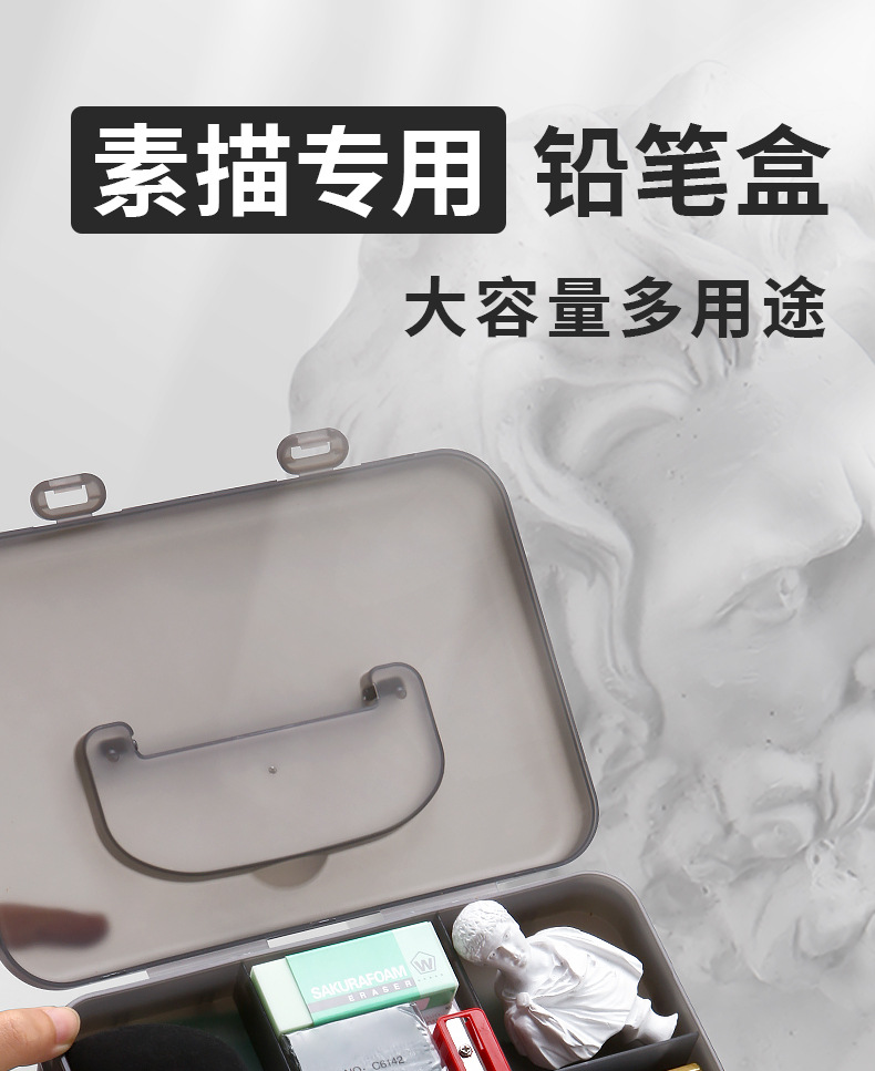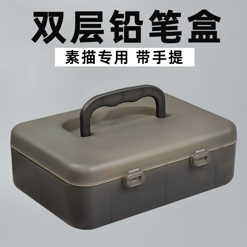 素描铅笔盒美术工具材料收纳盒子素描笔盒双层手提大容量塑料盒子