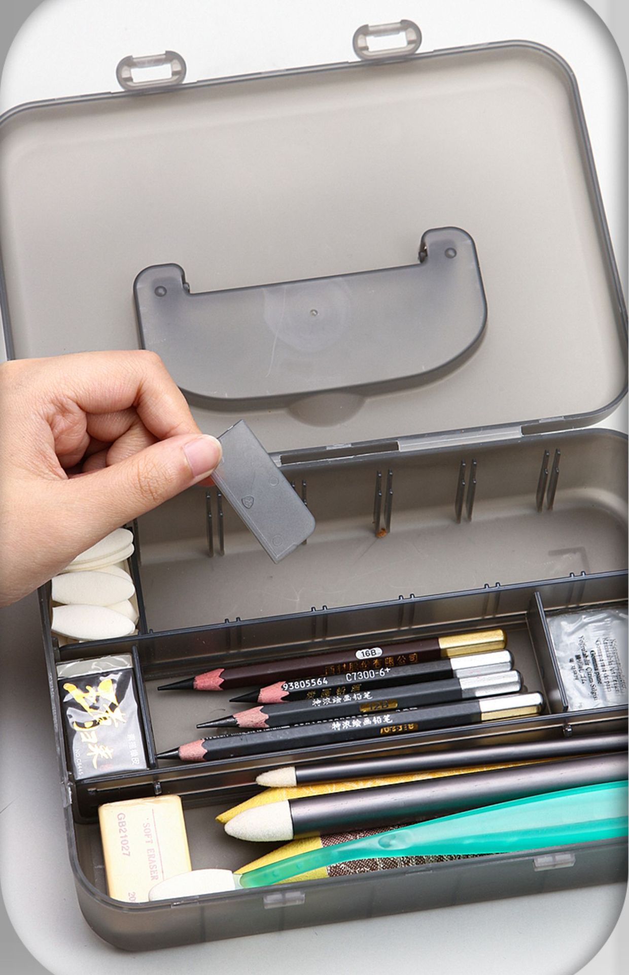筆箱美術生収納ケース二重スケッチ鉛筆ケースプラスチック文房具ケース絵画道具収納ケース筆箱