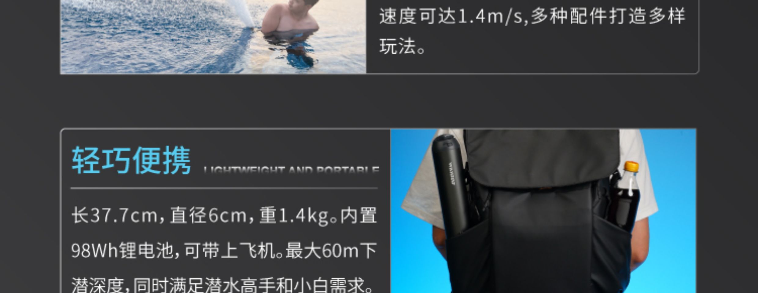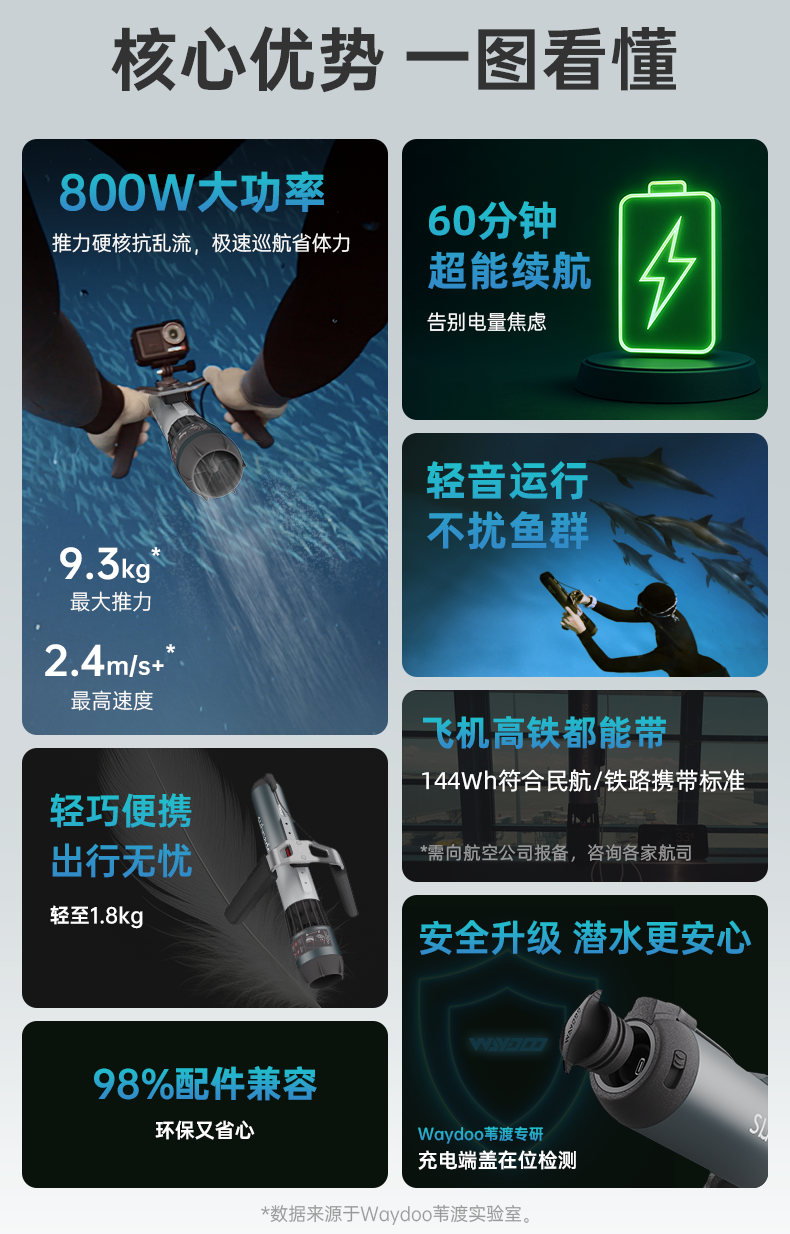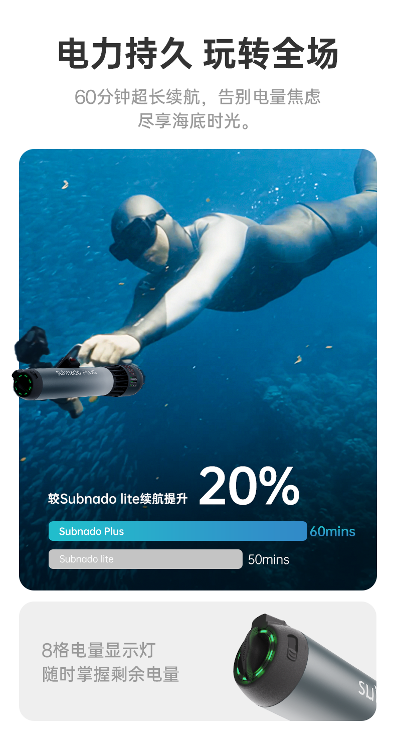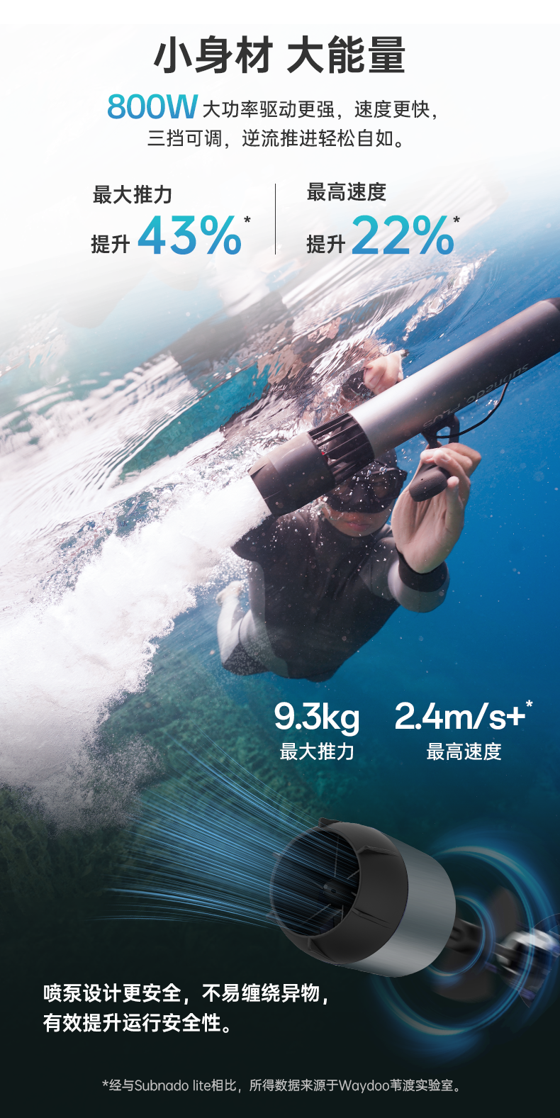 白鳍鲨Waydoo Subnado苇渡潜水自由潜水推进器助推器游泳浮潜水肺