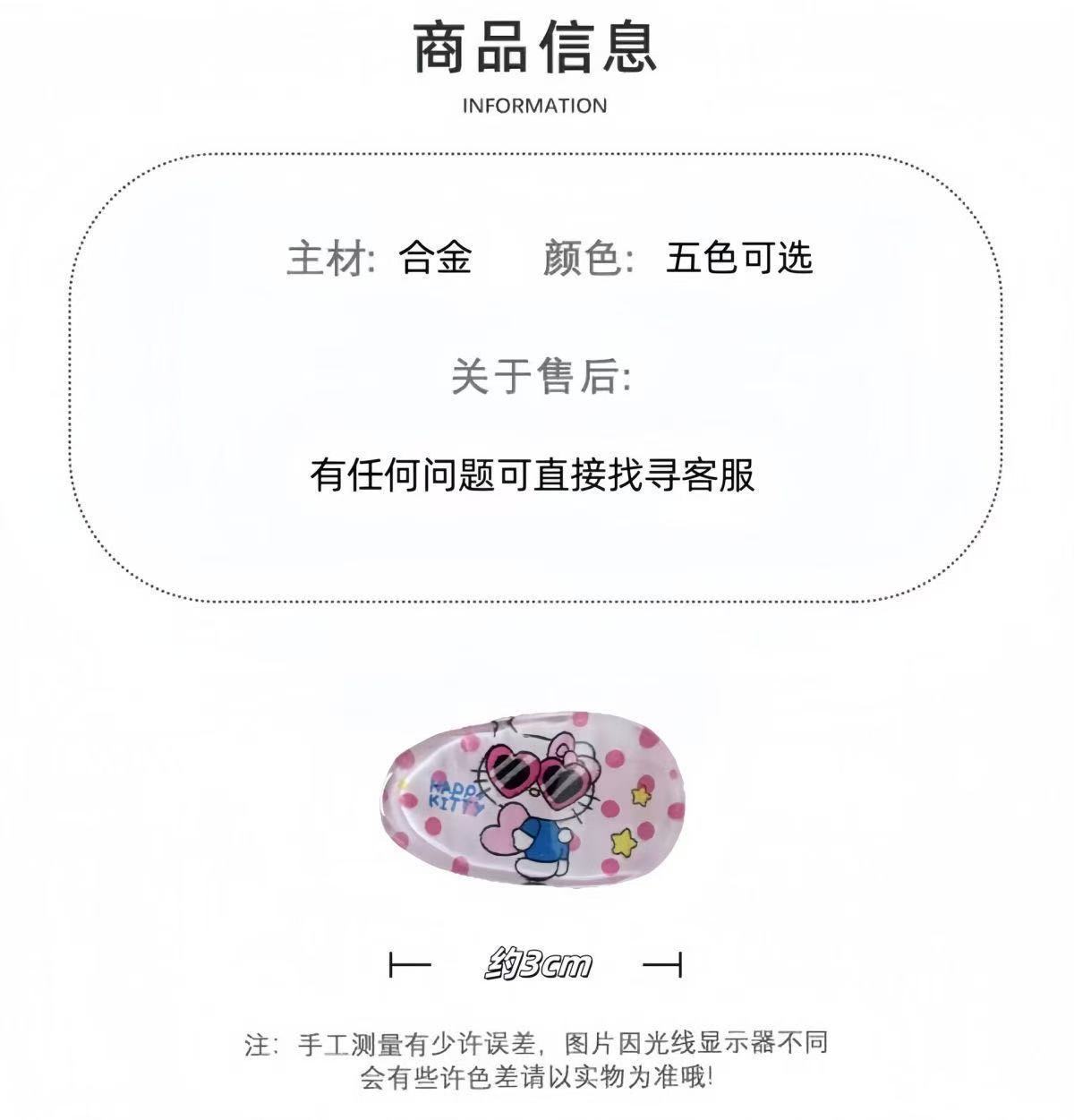 かわいいキティ猫愛ヘアピンサイドクリップサイド前髪ブロークンヘア 2025 新しい女性のヘアピン頭飾りカモノハシクリップ