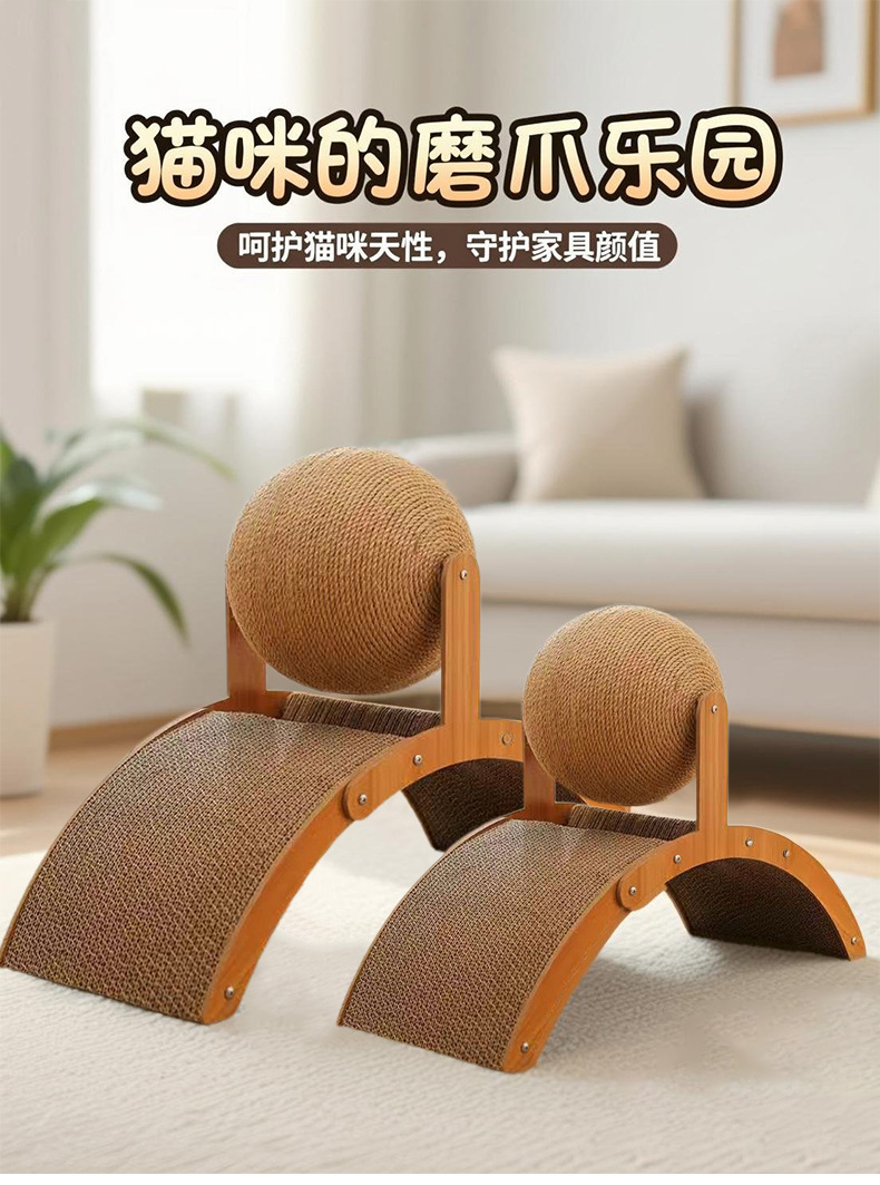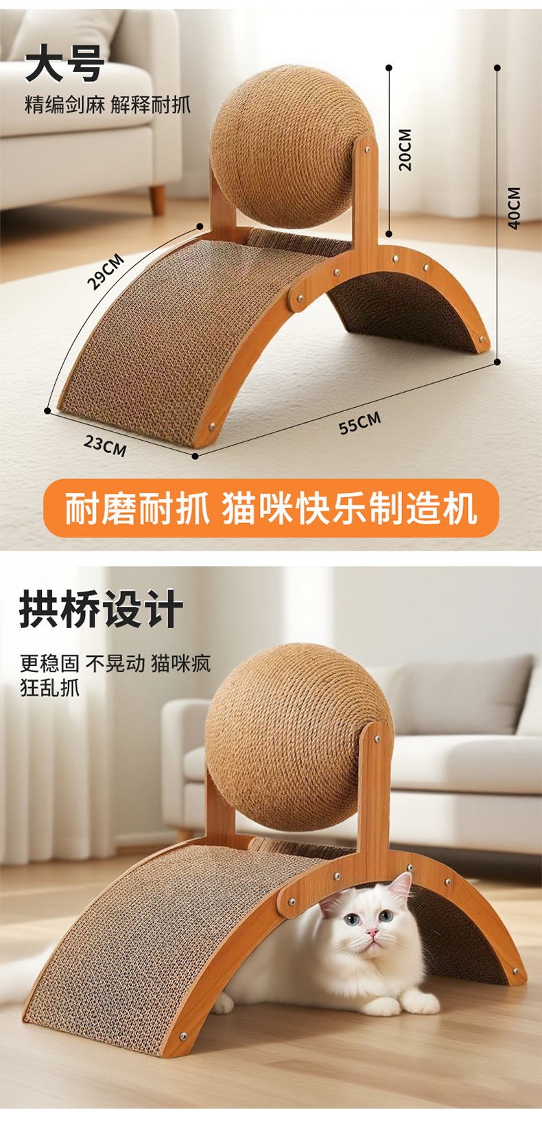 剑麻球拱形猫抓板猫咪玩具磨爪自嗨瓦楞纸猫爪板猫爬架自嗨猫玩具