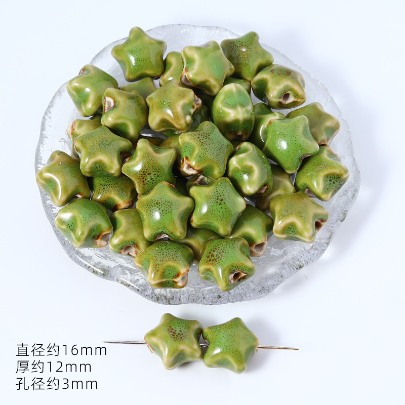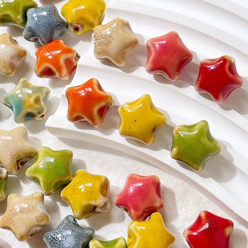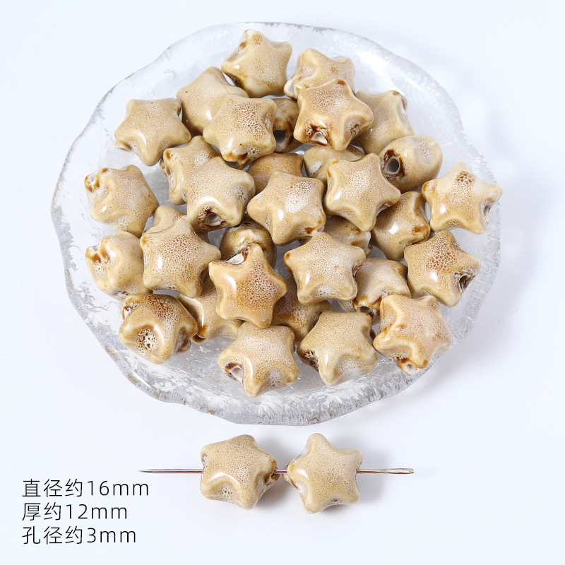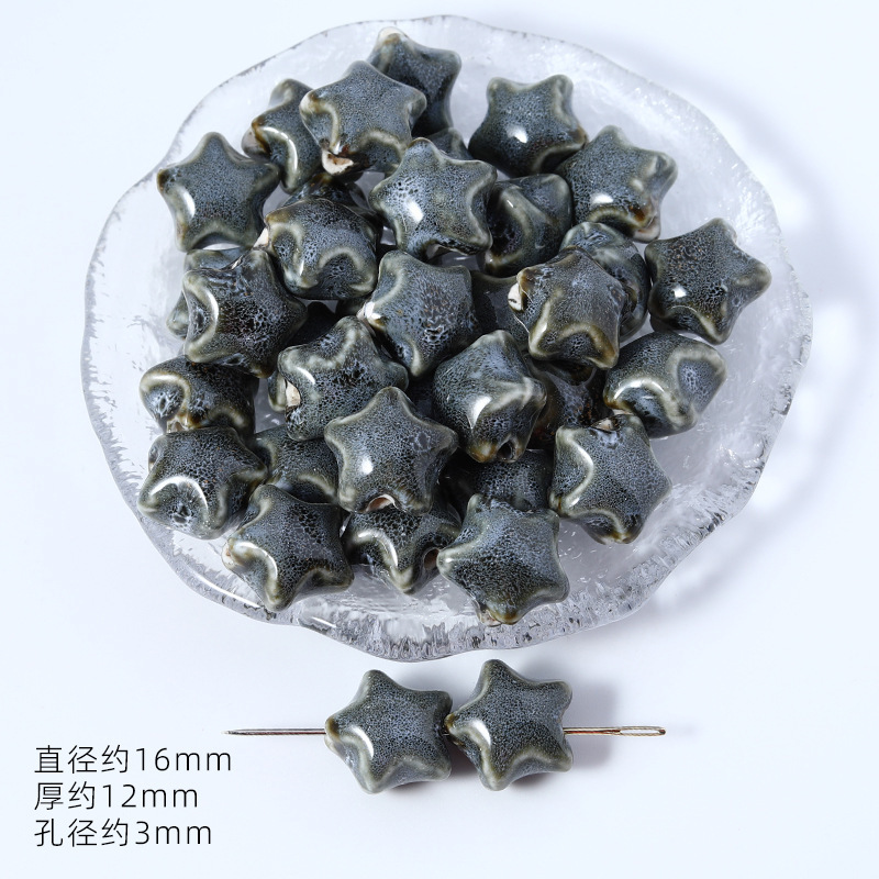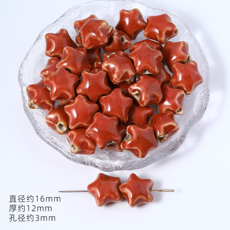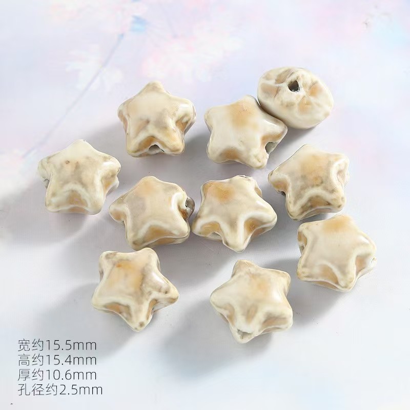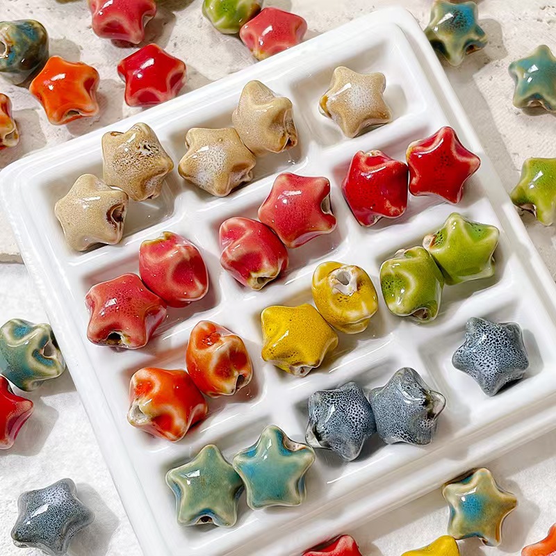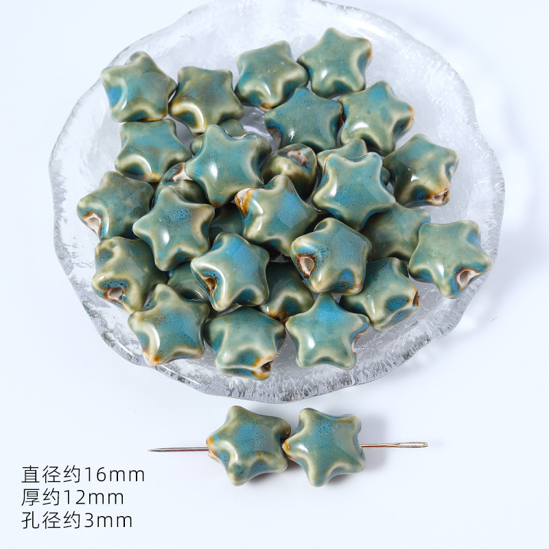景德镇陶瓷散珠五角星复古新中式花釉陶瓷珠子DIY材料异型瓷珠