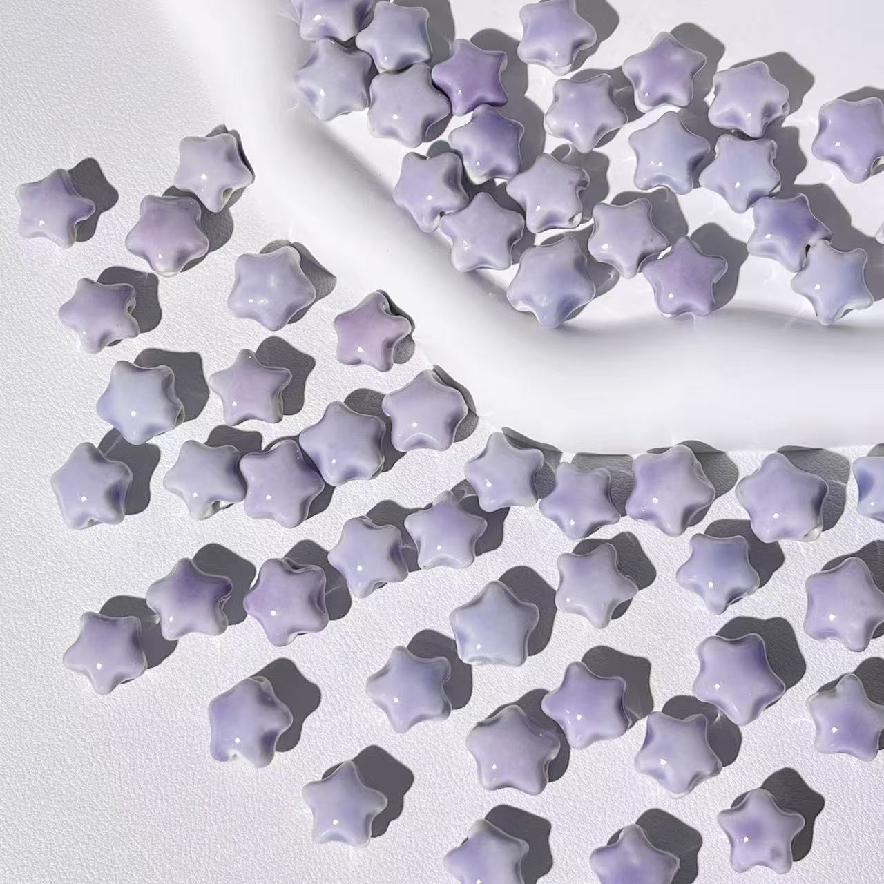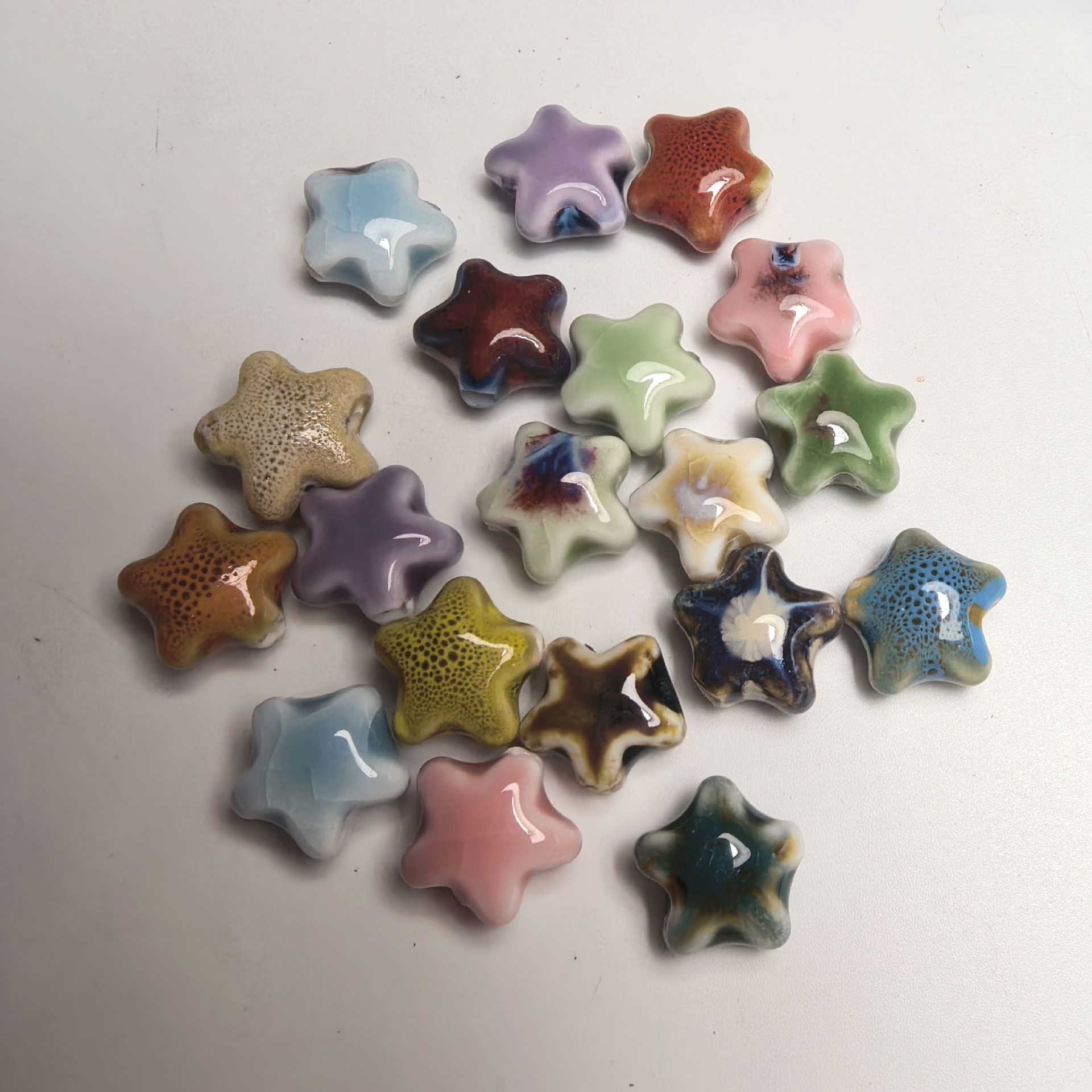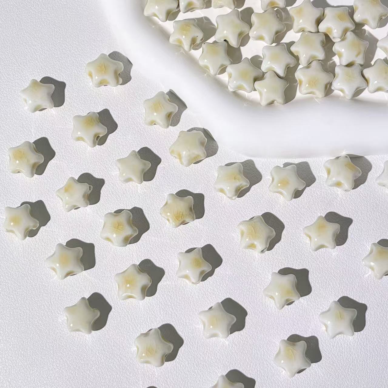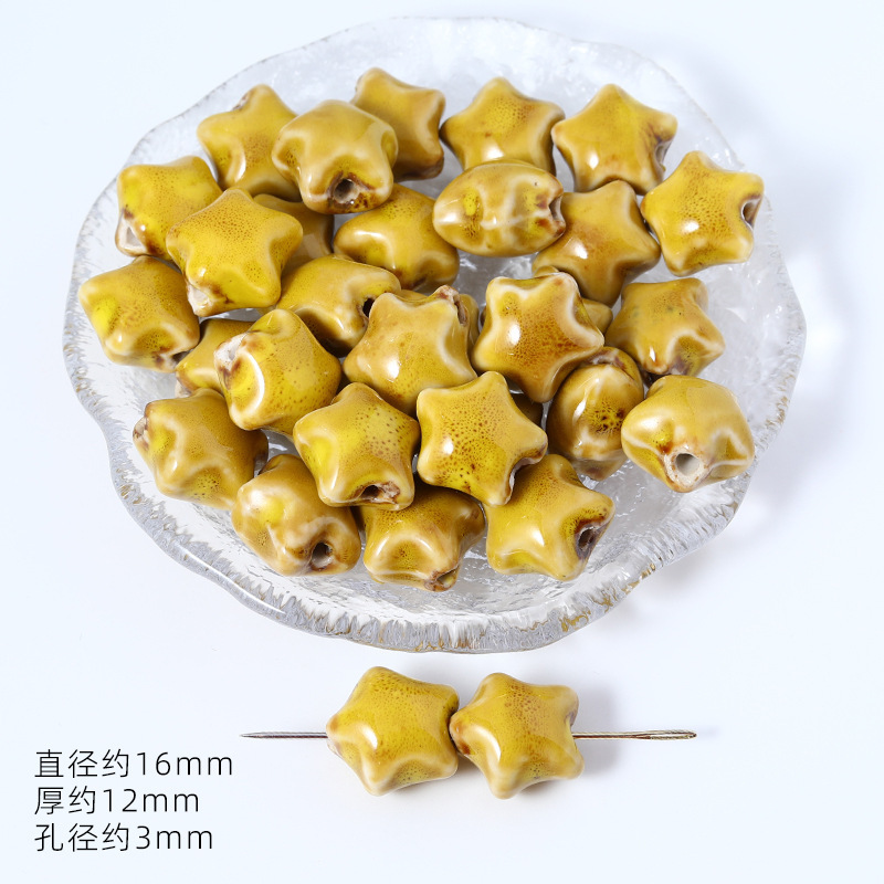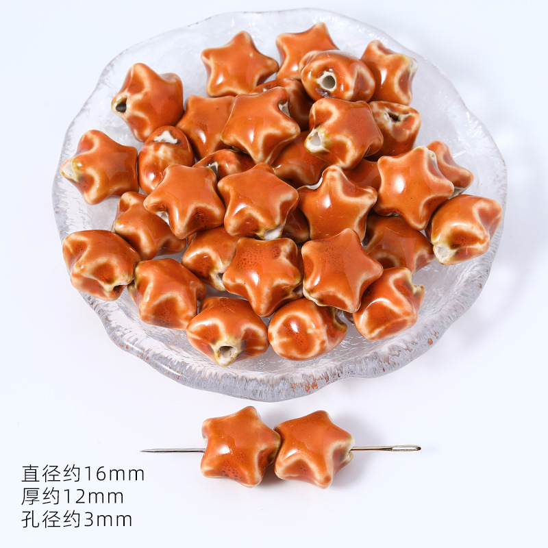 景德镇陶瓷散珠五角星复古新中式花釉陶瓷珠子DIY材料异型瓷珠