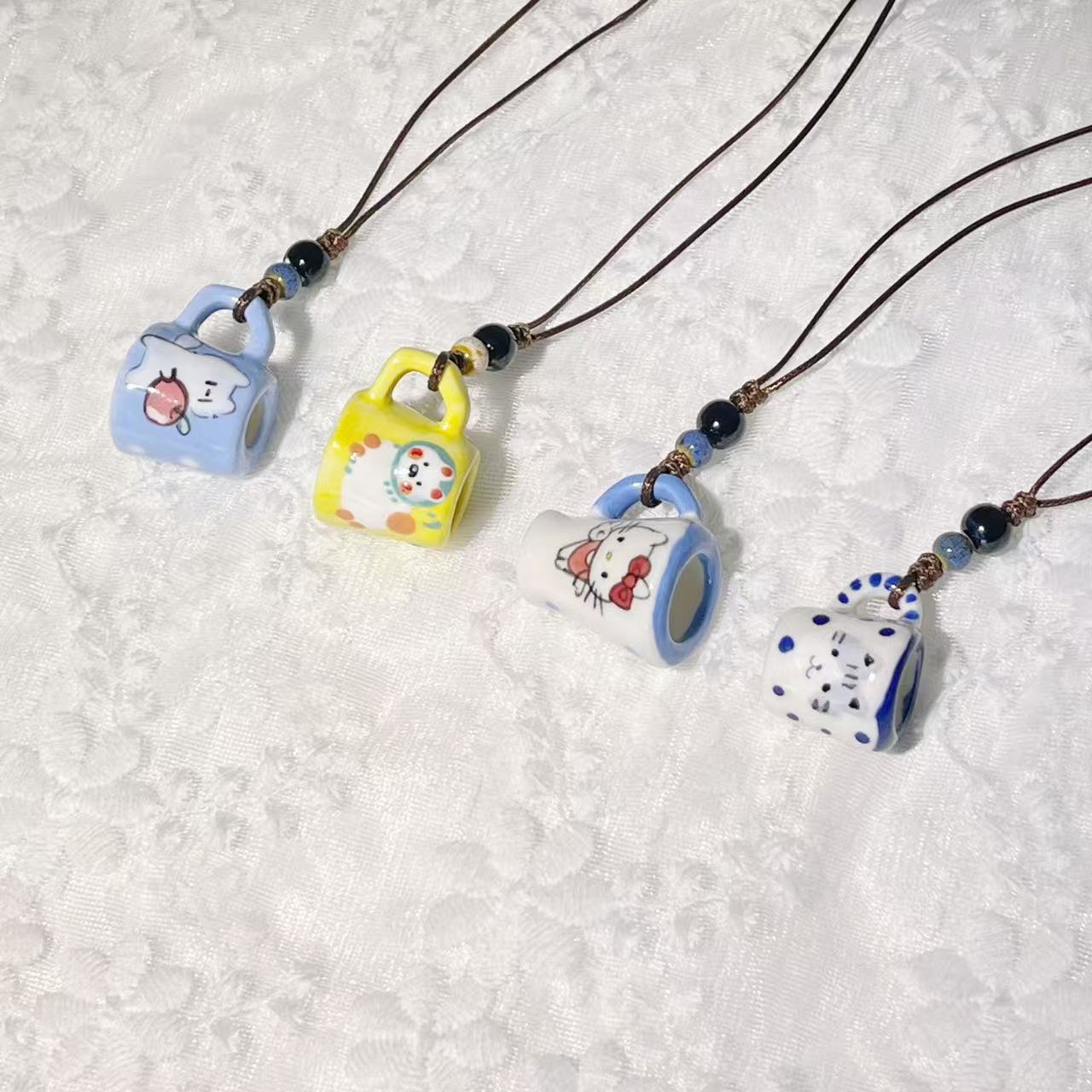 景德镇陶瓷项链卡通动物陶瓷杯子项链女可爱风毛衣链学生摆摊饰品