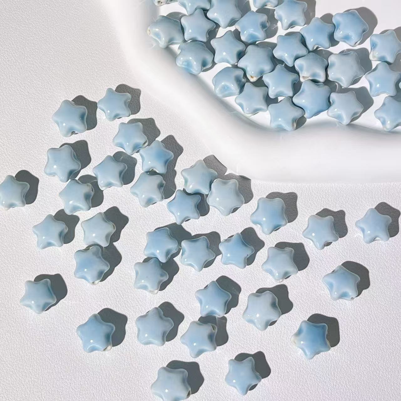 圆角五星 景德镇陶瓷五角星圆珠串珠散珠配件批发饰品diy材料