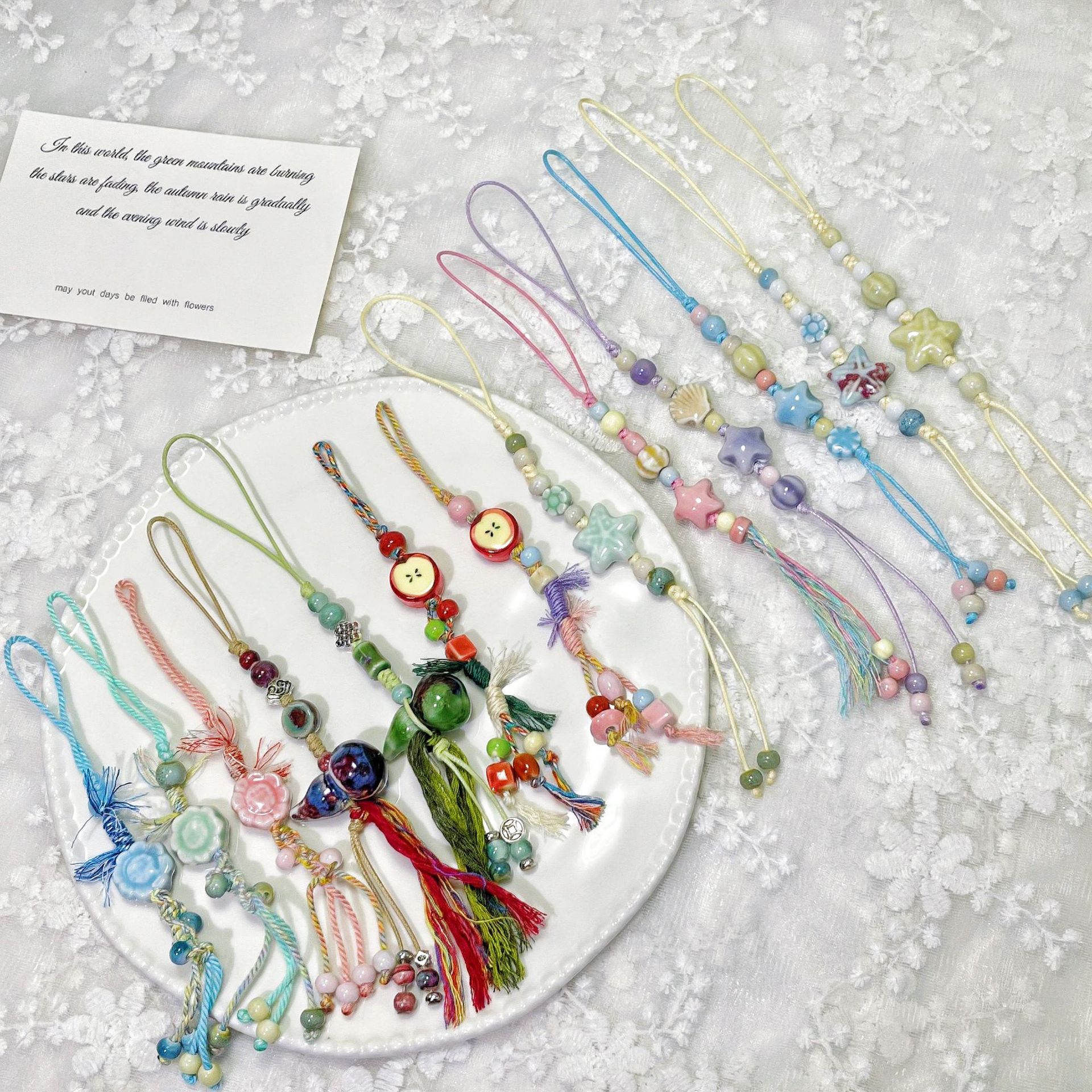 景徳鎮セラミック携帯電話チェーンバッグハンギングオリジナルシンプルで多用途のセラミックバッグハンギング手作りジュエリー編組ロープ学生屋台