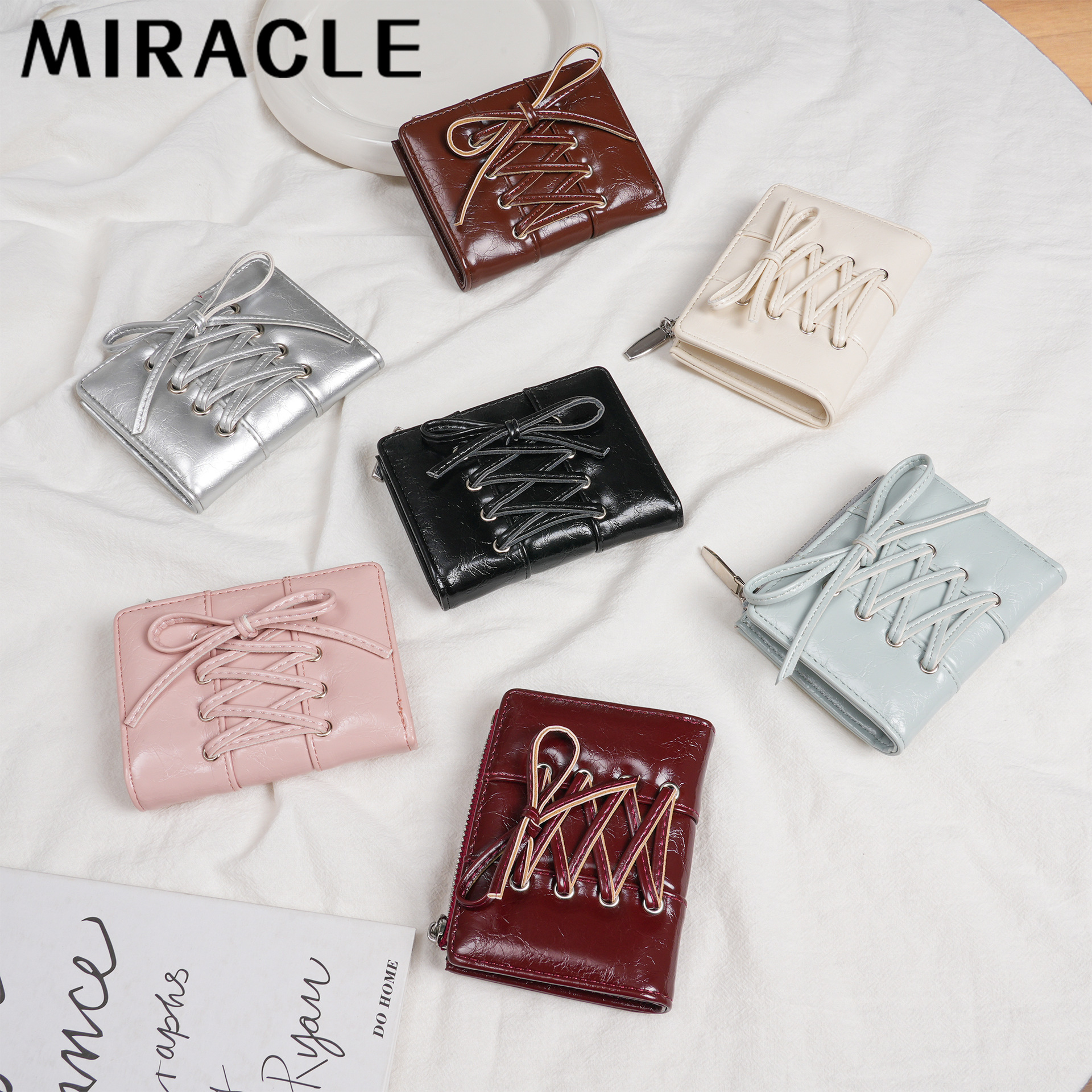 绑带蝴蝶结两折~Y2K皮料INS爆款miu系大容量女士钱包韩系简约现货