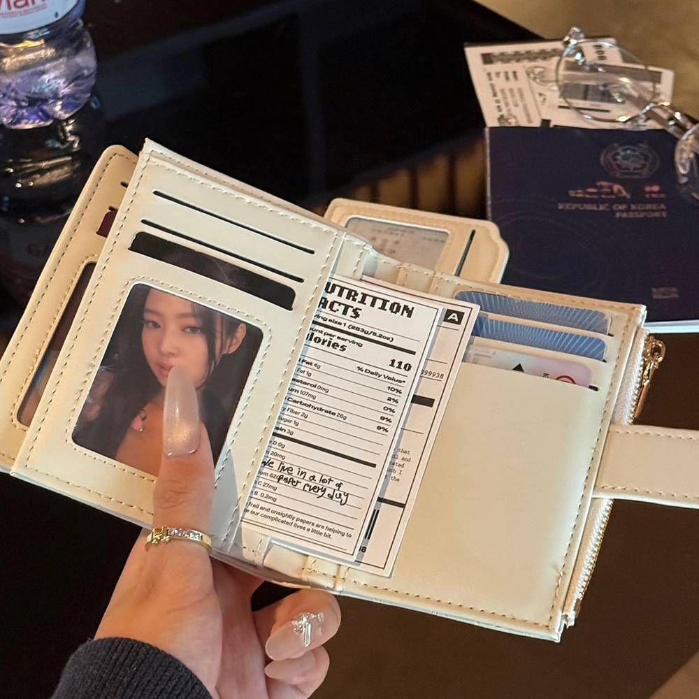【バレエ風】オリジナル財布付き女性ショート小銭入れボタン式三つ折りPUカバンボタン式