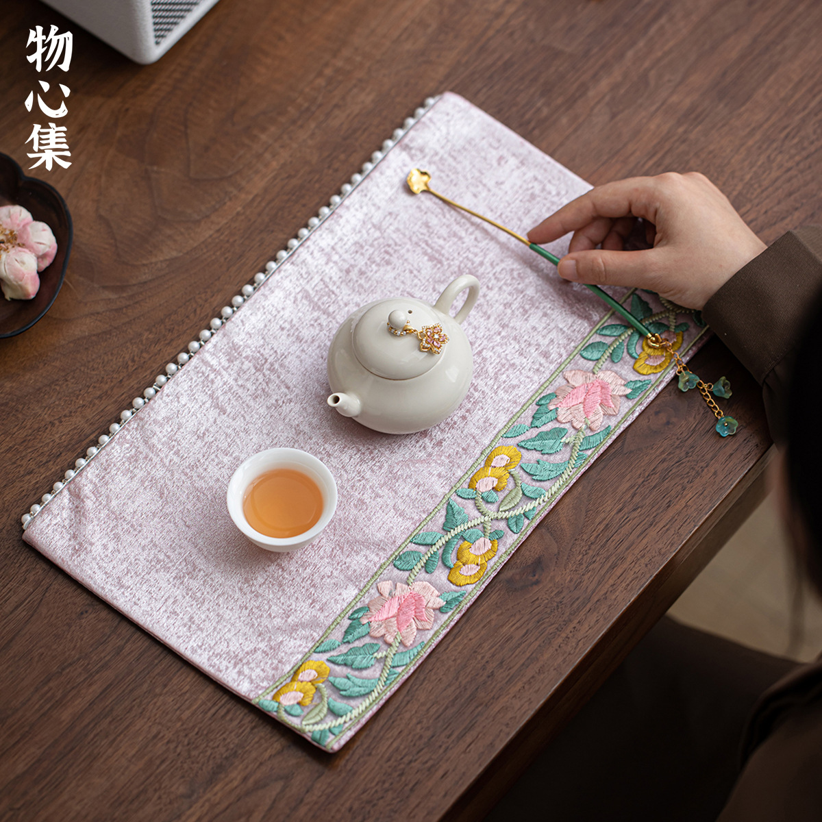 物心集手工刺绣茶席小众干泡防水垫子茶桌隔热垫子女士珍珠单人席
