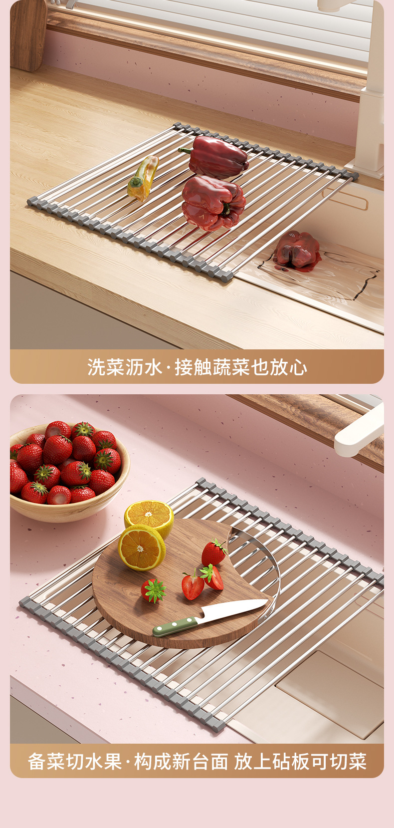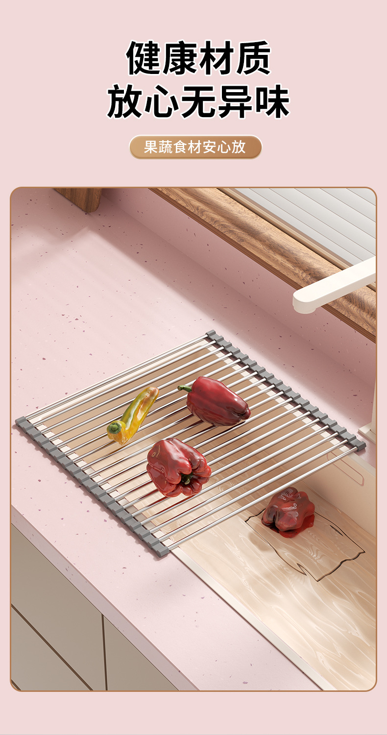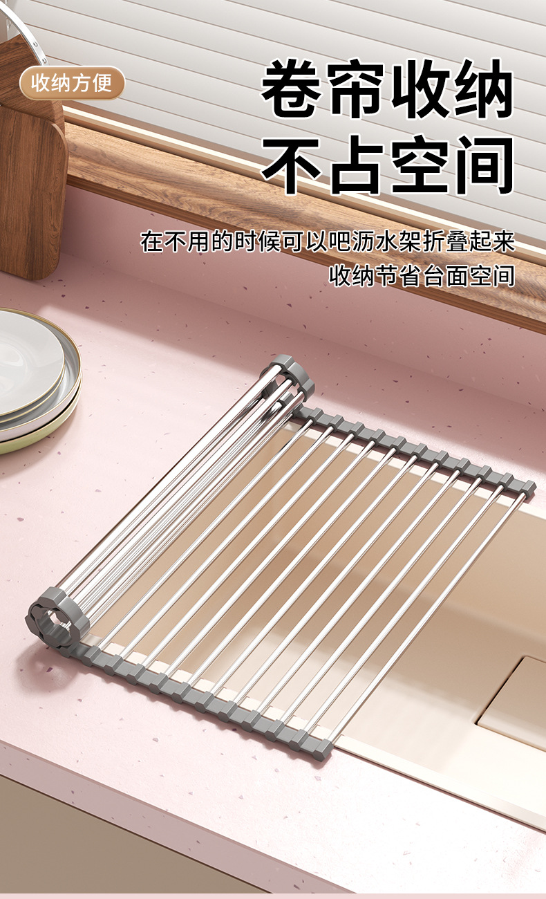 国境を越えたステンレス折り畳み水槽排水棚多機能シリカゲルロールスクリーン家庭用野菜水切りカーテン