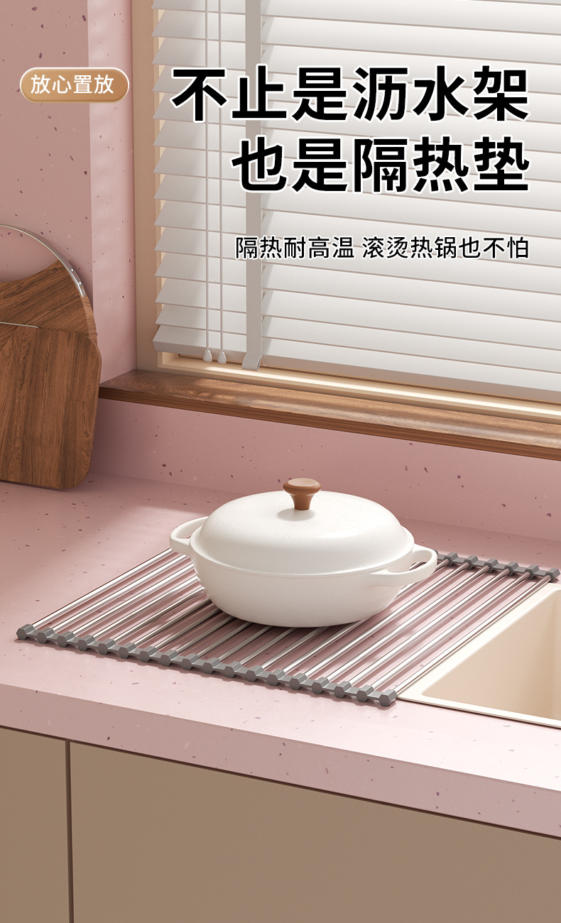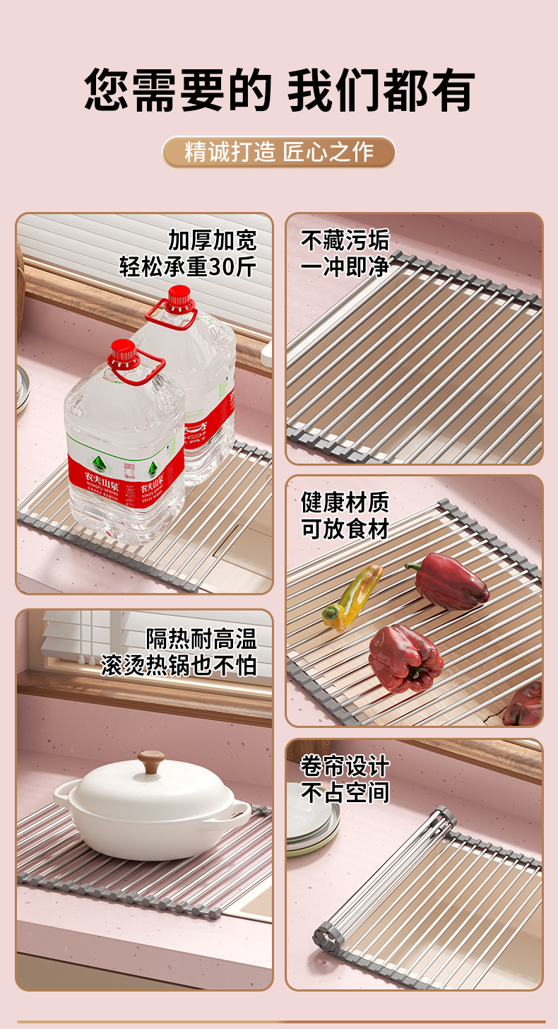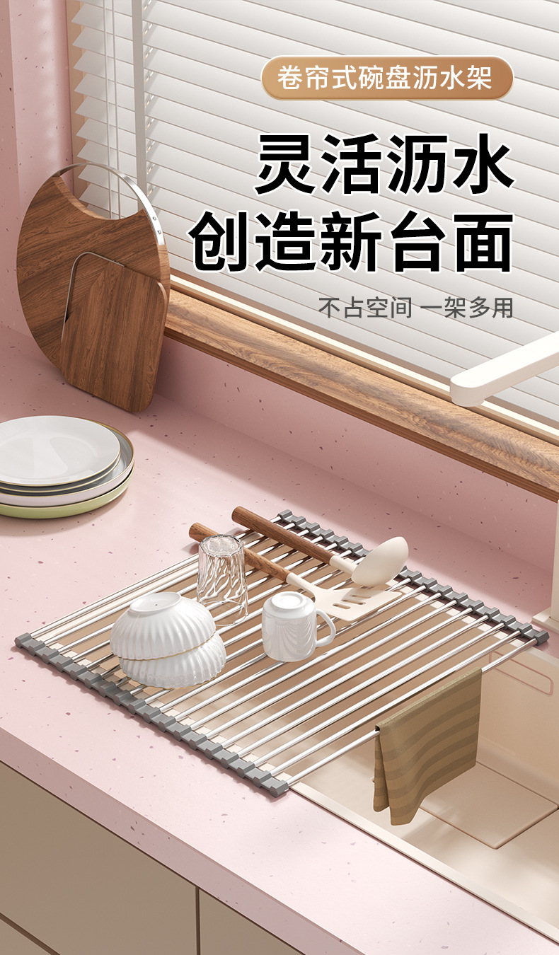 国境を越えたステンレス折り畳み水槽排水棚多機能シリカゲルロールスクリーン家庭用野菜水切りカーテン