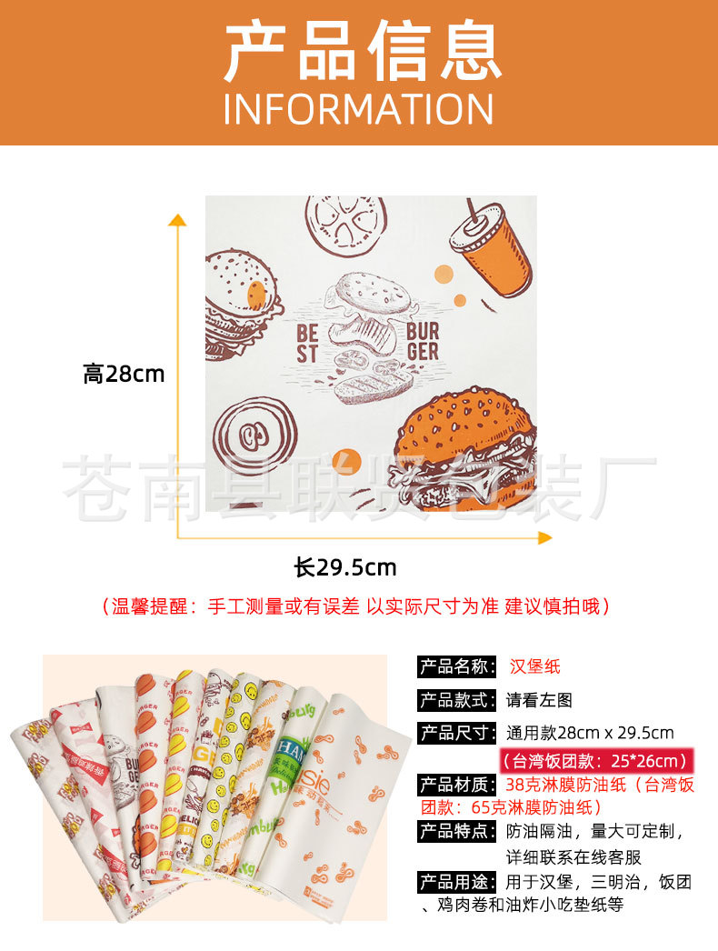 ハンバーガー紙使い捨てフィルム防油紙鶏肉ロール紙おにぎり紙ハンバーガー包装紙