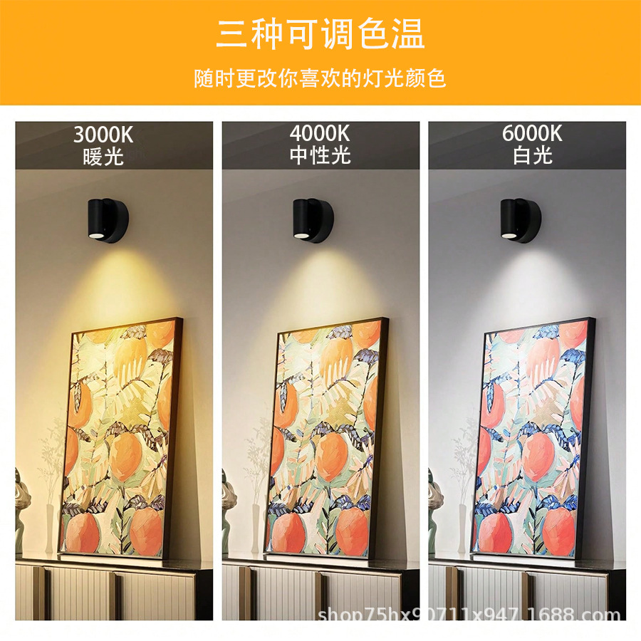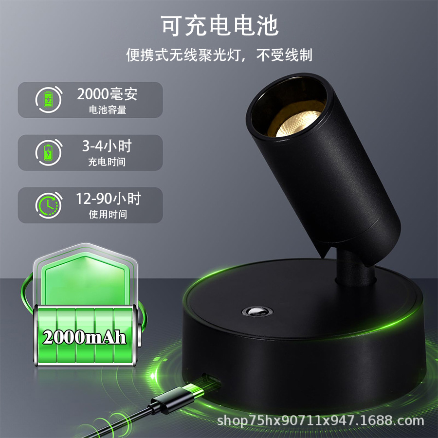 免布线充电壁灯无线磁吸射灯免接线卧室床头阅读灯照画氛围灯墙壁