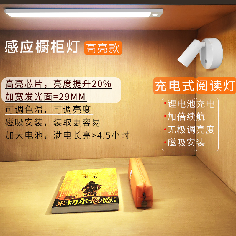 超薄型充電式人体感応食器棚灯衣酒棚led磁気感応灯学生読書寮灯