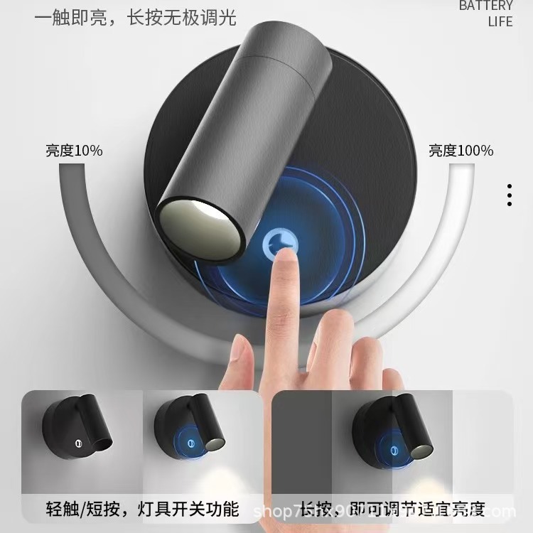 直销充电款壁灯磁吸免布线灯床头玄关卧室可调节射灯热销led灯