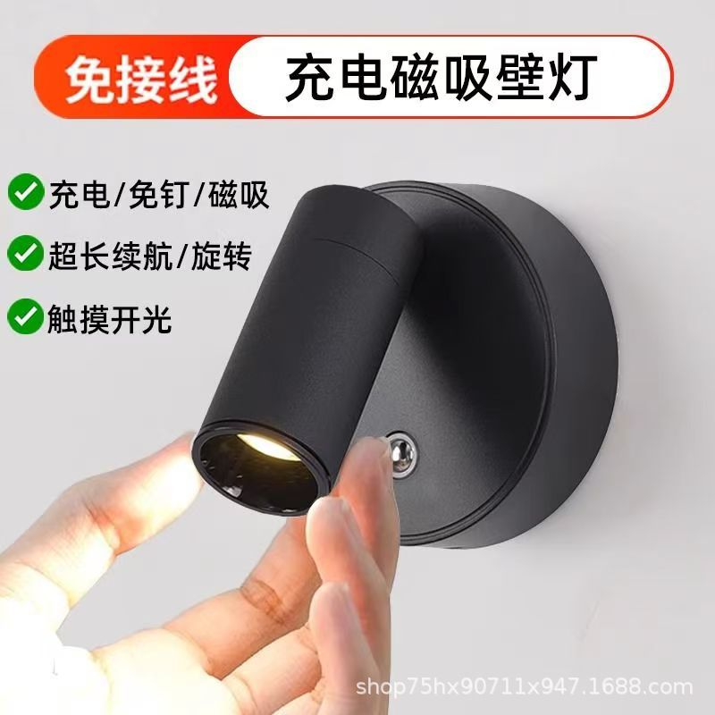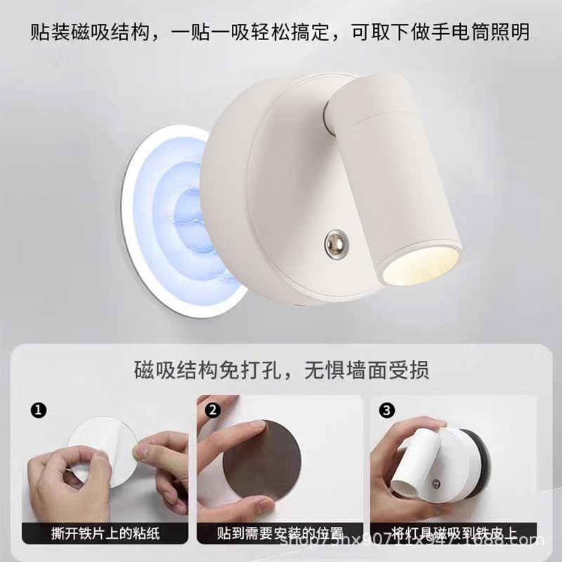 床头免打孔免布线充电壁灯现代简约磁吸可调角度小射灯小夜灯